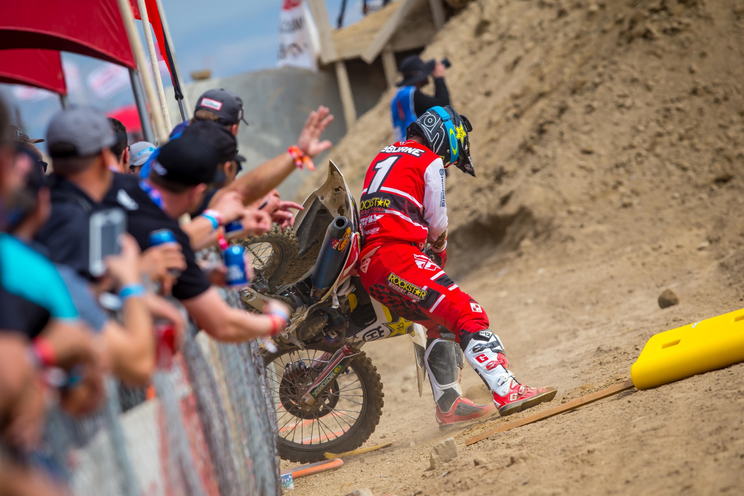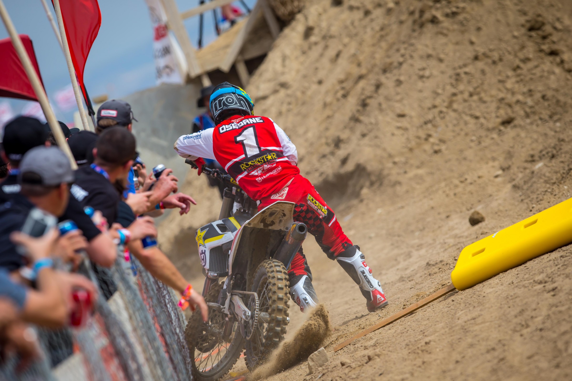 “At the end of the first moto I was like, ‘Oh, it’s not that bad, I can push.’” Osborne said. “But at the end of the second moto it was really sore. I think maybe if I had been had full strength I wouldn’t have gotten so wild so quickly when I crashed, but with what I have going on it was tough to hold on. I was really lucky to get up unscathed and get my bike out of the fence pretty quick. It should feel a lot better next weekend. I just jammed the crap out of it at Pala. Everything is structurally okay, we’ll just keep pushing forward. I’ve won three titles straight now pretty blemish free in terms of injury, and I can’t expect them all to be 100 percent pain free. I can’t be too bummed about it.”