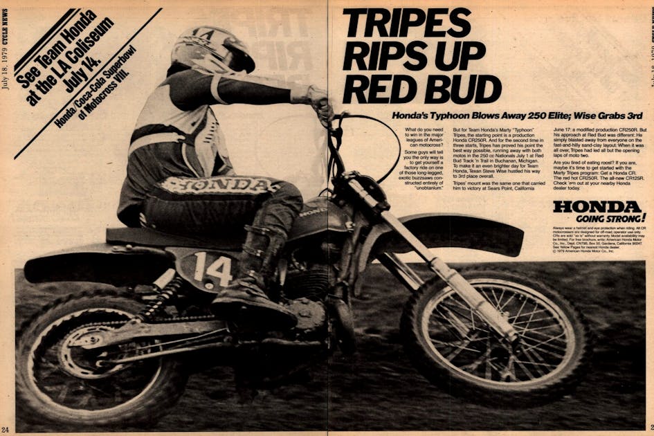 Marty Tripes scored the 250 win over Bob Hannah and Steve Wise at RedBud. In the 500 Class, it was Danny Laporte taking the win despite not winning a moto. His 2-2 scores beat out Rick Burgett’s 1-5 and Mike Bell’s 6-1.