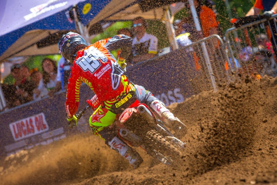 Jake Nicholls: Yeah, it was good. The first race was good. I had a really good start, and then when Marvin [Musquin] crashed, I was kind of, like, stuck because I had no choice but to go around him. I came through and rode pretty strong to the end. I was kind of tired with five minutes to go, and then I got a rhythm again at the end. Ninth was cool. It was good. I had so many messages and people from home because I guess it’s obviously the most followed series. So that was nice. Then second race I had a bit of a crap start, and then came through. I think I just got into ninth and slipped off and just struggled so much to get my rhythm again. It was one of those tracks it wasn’t quite as nice as I expected.