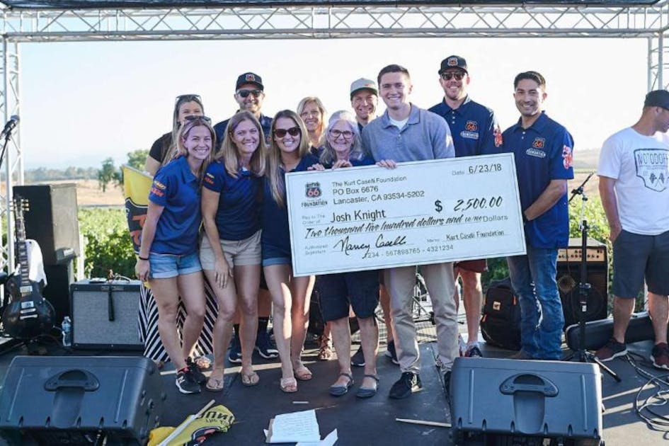 The doors opened at 4:00 p.m. and the event was kicked off with a trials show performance by Red Bull’s Geoff Aaron, which was one of the most popular parts of the evening. Following Aaron’s performance, the Kurt Caselli Foundation team took to the stage to present the Fall 2018 scholarship winner Josh Knight with a scholarship check, a handcrafted KCF Power Award to thank the Doffo family, and AMA’s Jim Williams joined the KCF on stage to present the Friend of the AMA award to the team. Nancy Caselli, Kurt’s mother, read a piece that Kurt had passionately wrote and asked his mother to proofread via email. It was a tear-filled audience post-Nancy’s reading.