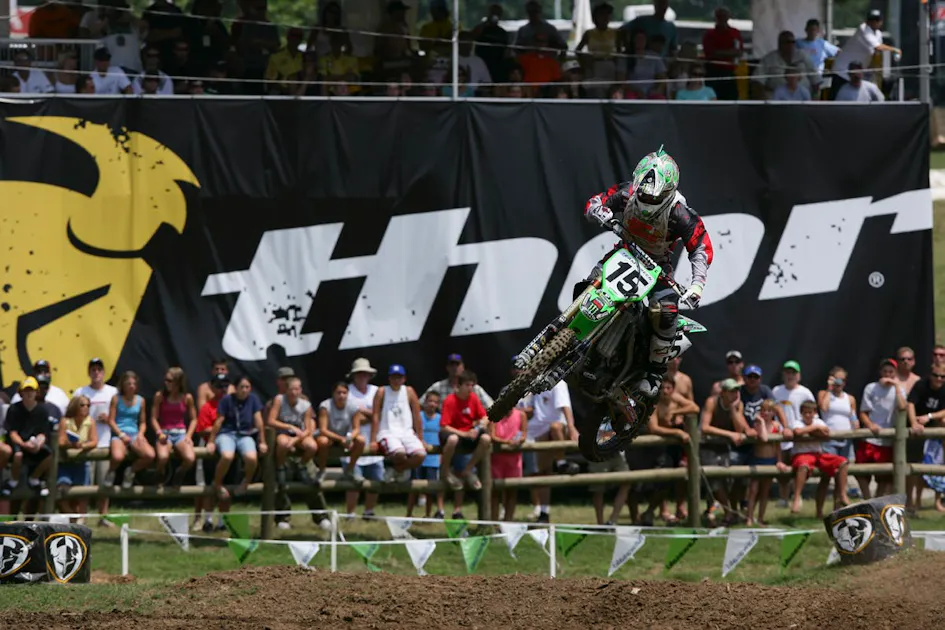 The first day of the 2005 AMA Amateur National Motocross Championship at Loretta Lynn's got underway, and three young riders would make quite the impression on everyone. Kawasaki Team Green's Ryan Villopoto and Suzuki support riders Jason Lawrence and Ryan Dungey would all win classes, with the wins for Villopoto and Dungey marking their one and only titles at the Ranch. Obviously, they would be much, much more successful in the years to come as pros. Lawrence won multiple titles at the Ranch, including the 125 A/Pro Sport class ahead of Villopoto. He, on the other hand, would only win a single title as a pro—the 2008 Lites West Region over Dungey.