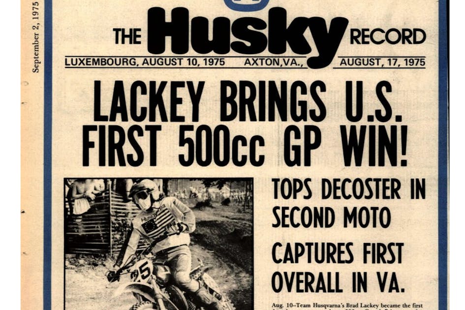 At the final 500cc Grand Prix of 1975 in Luxembourg, Suzuki's Roger Decoster ended his title run with one more GP overall. All told, Decoster would win seven of the 12 rounds as he wrestled his title back from Husqvarna's Heikki Mikkola. The bigger news in America is that Brad Lackey won a moto in Luxembourg, the first moto win for an American in the world's premier motocross series. One week later, he would be back in the states for the end of the 500 Nationals and win Lake Sugar Tree in Virginia.