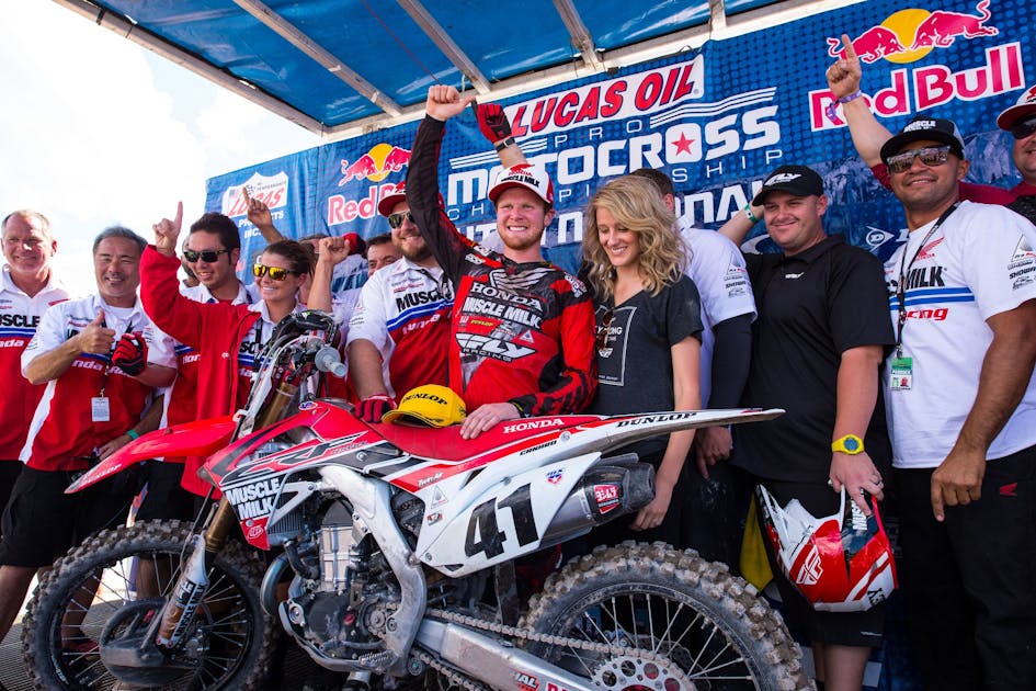 Honda's Trey Canard won the Salt Lake City 450 National at Miller Motorsports Park in Utah over Red Bull KTM's Ryan Dungey. Canard's Honda teammate Eli Tomac finished third with 4-3 scores. The Utah win turned out to be 250 National Champion Canard's last outdoor national victory. And that year's series champion, KTM rider Ken Roczen, finished fourth in what turned out to be his last ride with Red Bull KTM.
