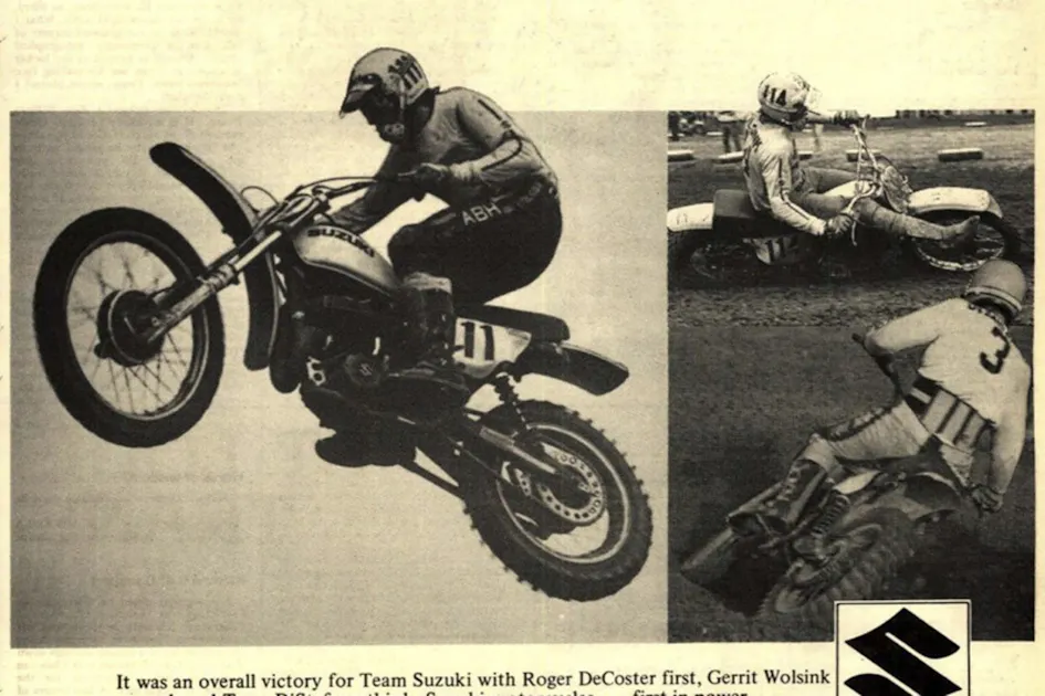 Another Trans-AMA, another win by Roger DeCoster, only this time it's also a Suzuki sweep of the podium. The race is in St. Peters, Missouri, and DeCoster, at this point a four-time FIM 500cc World Champion and reigning Trans-AMA Champion, is followed in the results by his teammate Gerrit Wolsink and Tony DiStefano, the AMA 250cc National Champion.