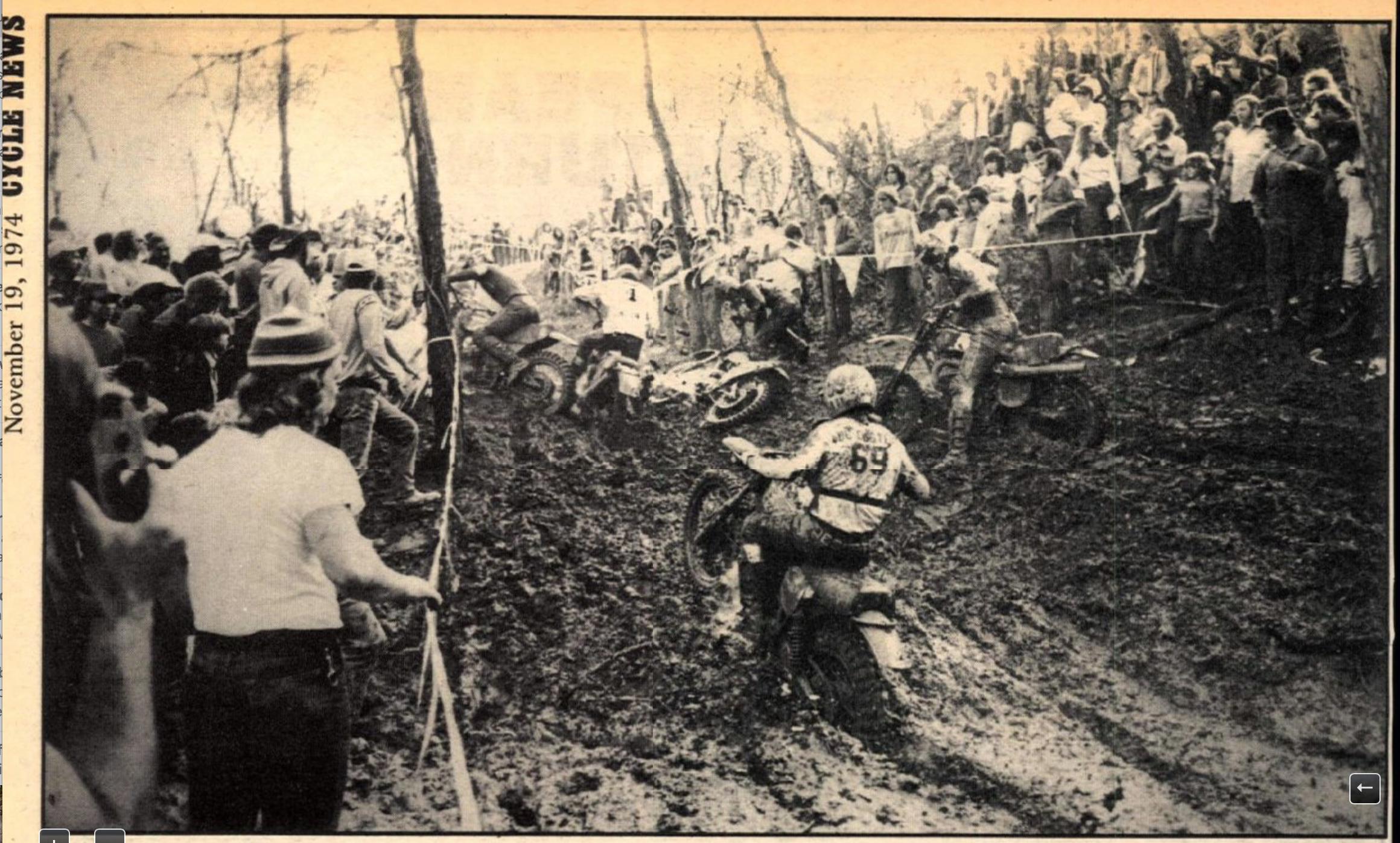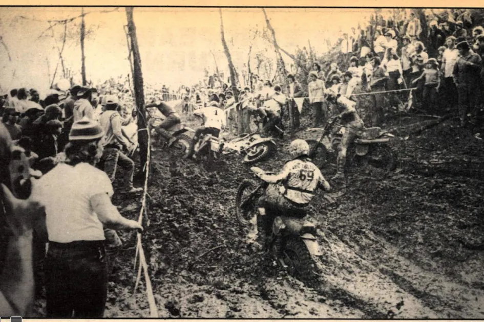 Suzuki's Roger DeCoster is the winner of the muddy Lake Whitney Trans-AMA race in Texas. His teammate Gerrit Wolsink was second. How muddy was it? Check out this photo of what Cycle News called the "Trans-AMA Enduro"