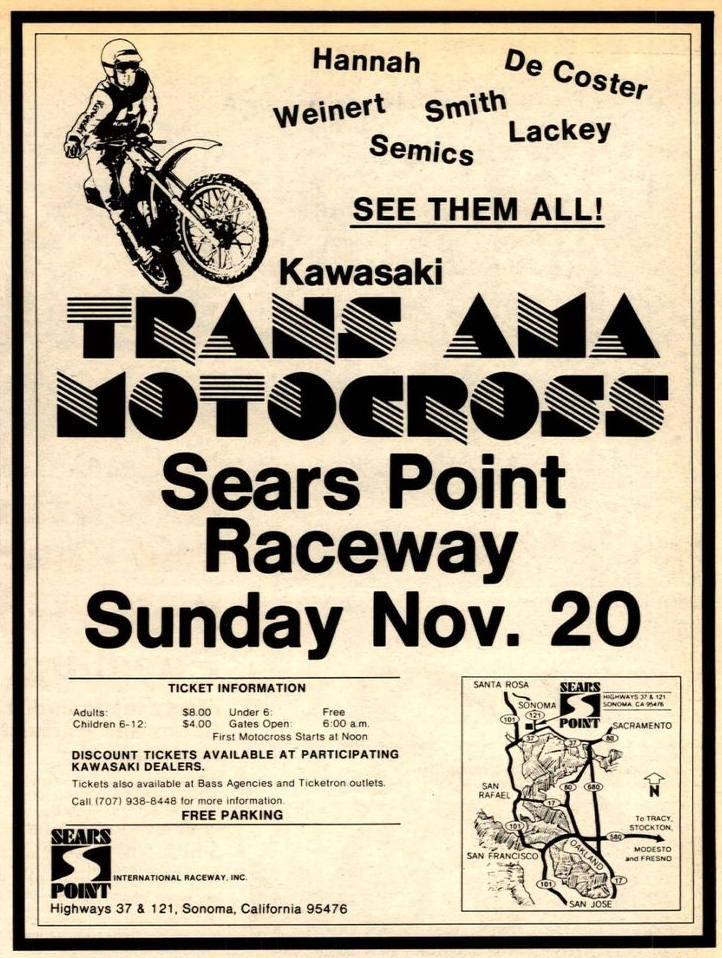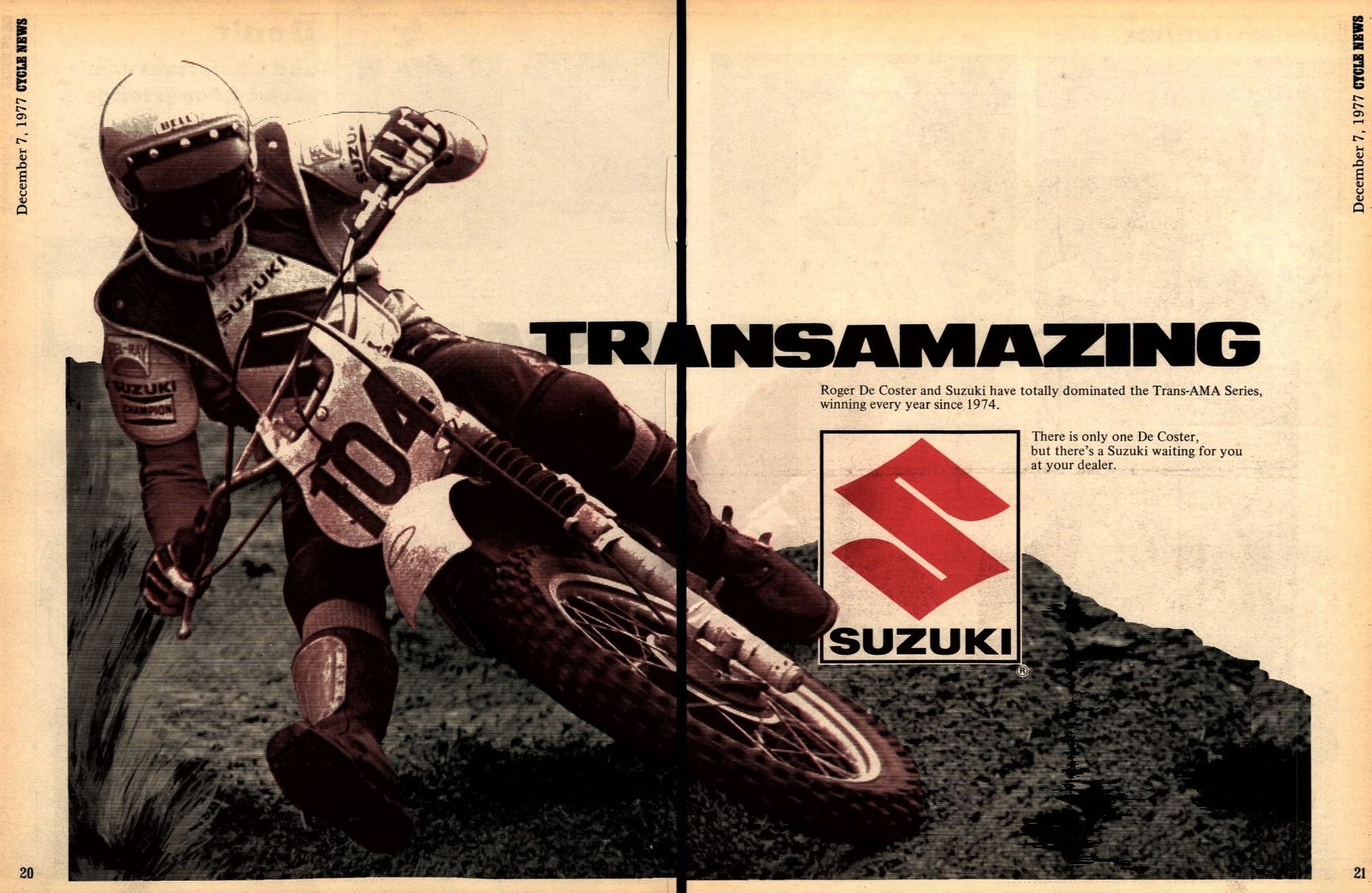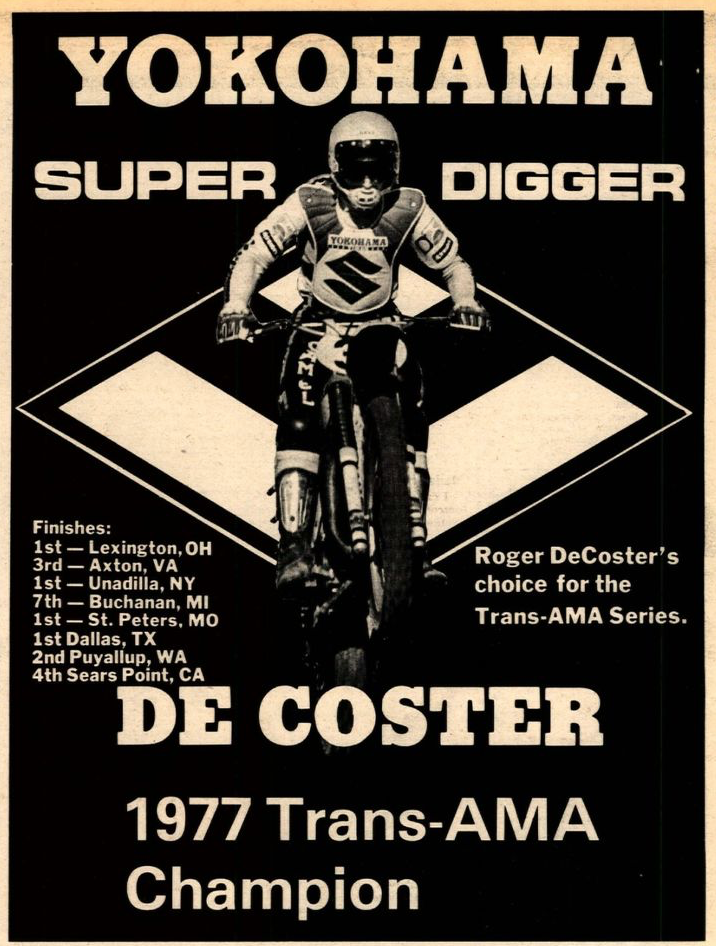 Fast forward seven years and Roger DeCoster clinches what will be his fourth straight Trans-AMA Series title by finishing second to American favorite "Bad" Brad Lackey on a works Honda at the Sears Point round. All told, DeCoster would win 26 different Trans-AMA rounds between 1970 and '78, giving him the record for the most race wins as well as titles in the once-grand tour.