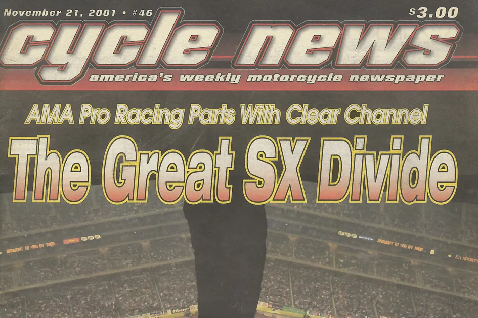 Cycle News referred to the topic of the time as "The Great Supercross Divide," a civil war that began a month earlier when the AMA announced that they could not come to terms with SX promoter Clear Channel, so they were going to bring a new Chicago-based company called Jam Sports to organize a new AMA Supercross Championship.