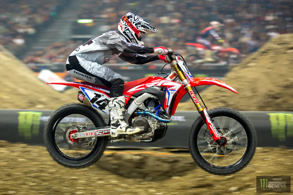 Zach Osborne: Yeah. I felt like I had more control there on the inside and I actually really, really crushed the start. Barcia just had the angle. And then I tried to protect the inside a little bit because I knew I was a little wide in the first turn because I was really deep. When I went to turn back, I got smoked and then there were bikes on top of me and stuff. Really happy to walk away healthy. There’s a lot of positives I can take. I was, I feel, the best guy here this weekend. Blew a main event last night, but I feel good about my setting that I’m racing with. I feel like my fitness is good. It just didn’t come together for me. It’s really unfortunate because we all put a lot of effort into it. I wanted to win King [of Geneva] really bad, so we’ll just keep plugging away. But a lot of positives I can take, like I said, going into Anaheim. That’s why I came here, to kind of get some kinks out, so it’s nice.