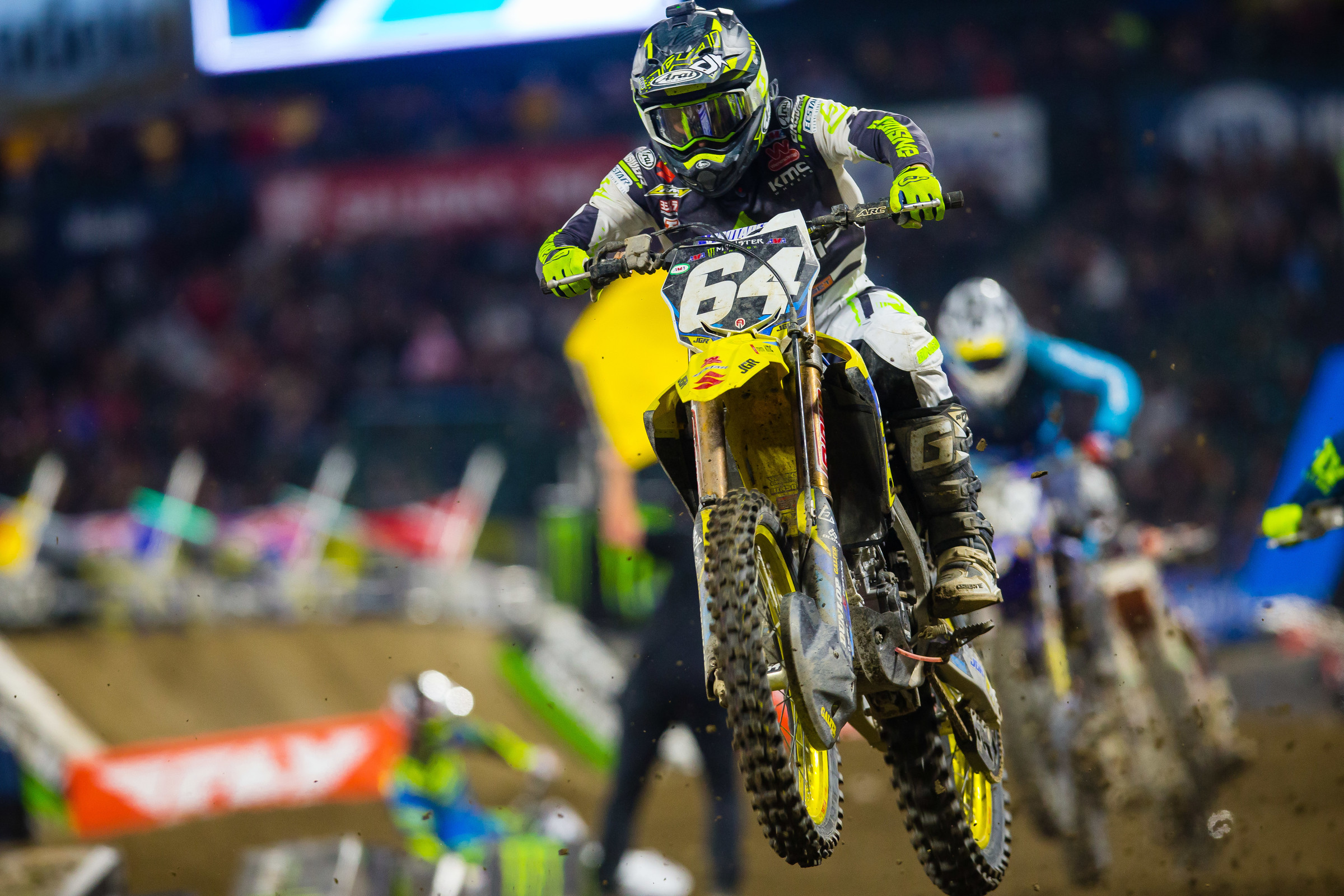 Brown’s a rookie and getting his feet wet in SX. I’d love to see some sort of AMA rule where Carson can ride a TT-R110 in SX because I bet he’d finish right around where he is now.