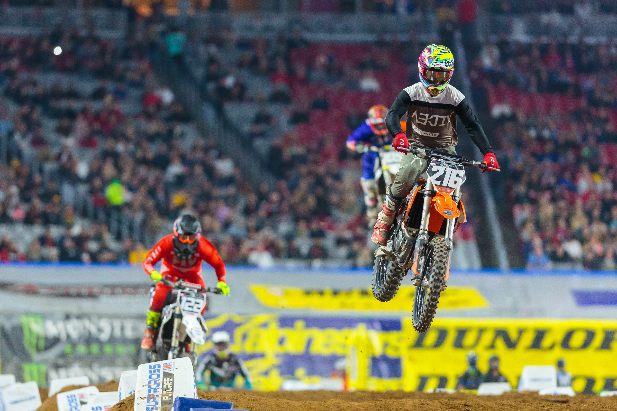 Yeah, to a point. Like I said, I’m from Washington. My only podium ever in arenacross was in mud. A1 was kind of… I wouldn’t say muddy. To me, that wasn’t muddy. It was just greasy. So that to me was maybe why I did good because it was rainy and it was slick. So it didn’t boost my confidence a whole lot. I still came into Glendale with zero expectations because it was dry. So I didn’t even think I’d be able to do that in the dry, because in arenacross I couldn’t pull my head out of my ass in the dry either. But for some reason, things worked out in Glendale.