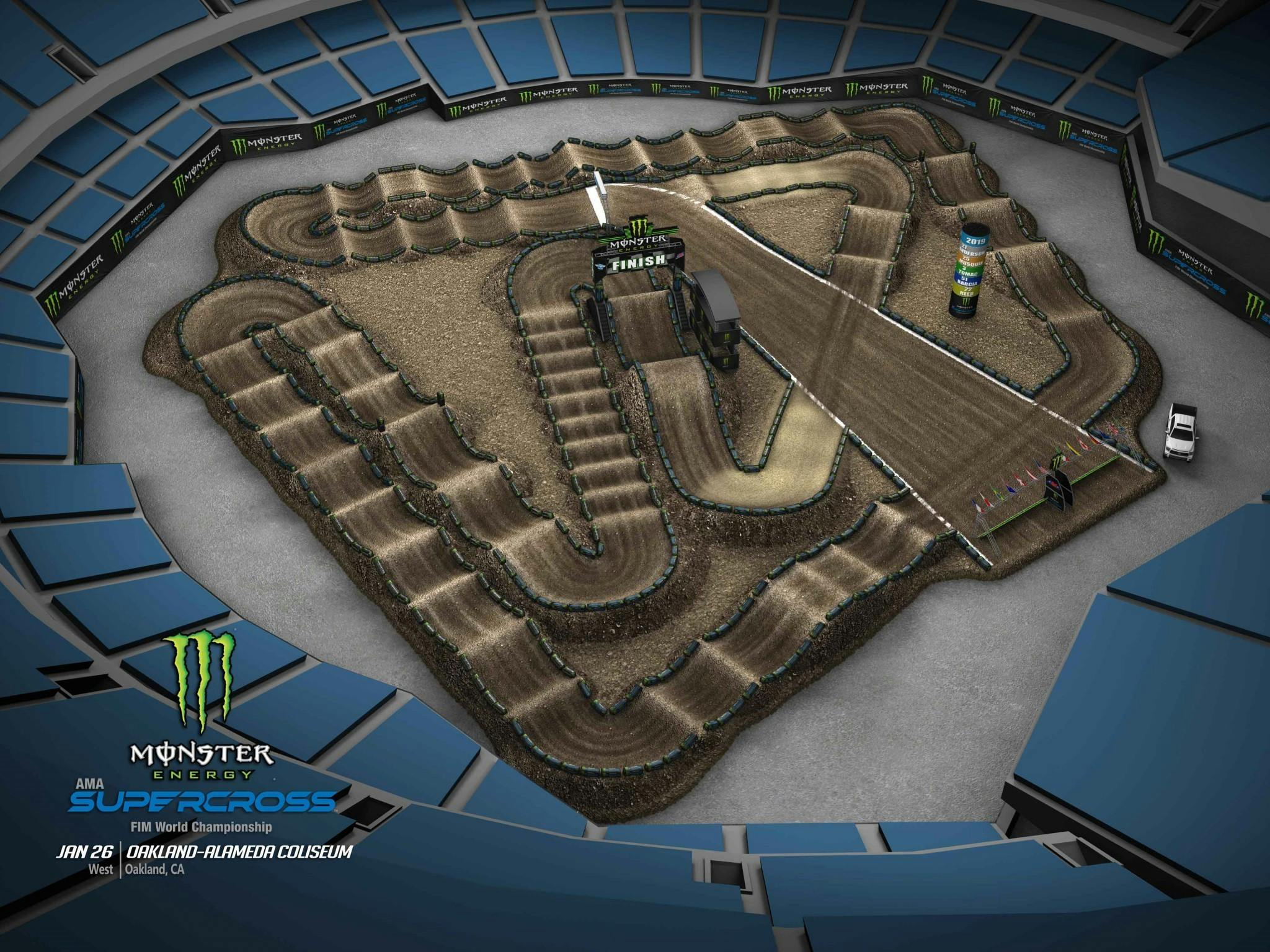 One thing to remember when analyzing an Oakland layout is that the dirt will break down significantly. A rhythm section that looks easy on paper is usually much harder due to ruts, soft spots, and overall deterioration. I would typically have the fastest line as my game plan, but I would also work out an alternate line for the second half of the main event when the track starts to change. For a great example of this, go back and watch last year’s 450 main event and how difficult the track was to navigate for the world’s best.