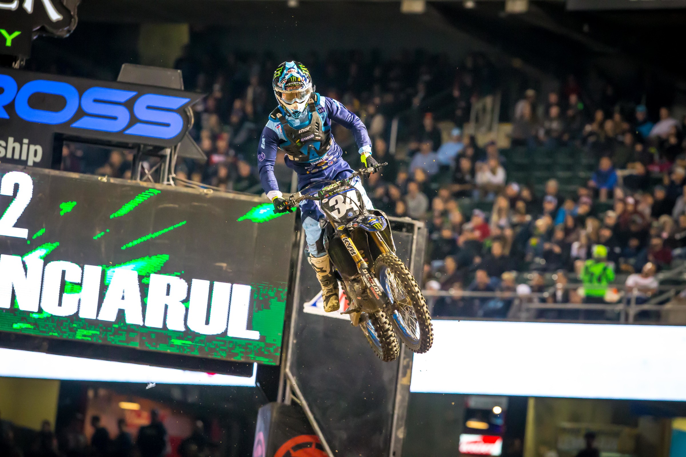 Points deficit from the lead for fifth-ranked 450SX rider Justin Barcia. Barcia crashed hard in the final Triple Crown race in Anaheim and rode with a bruised tailbone at Oakland. He salvaged seventh to stay in title contention.