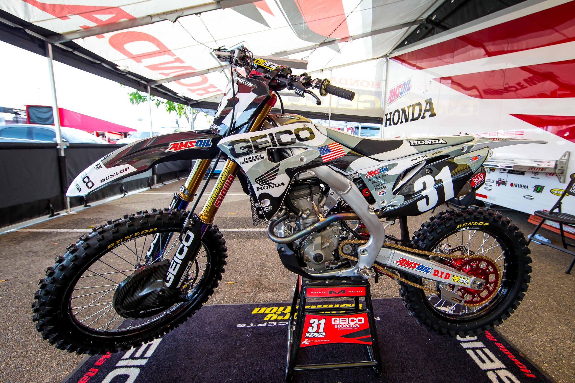 Elsewhere in the 450SX Class, Matt Bisceglia and Cycle Trader/Rock River/ Yamaha have parted ways. In Bisceglia’s place now is Ryan Breece, who’s in the midst of his first 450SX season. We spoke with him yesterday and he’s excited to be part of the team. He was already on a Yamaha and uses Enzo suspension, just like Cycle Trader/Rock River/Yamaha does, so the transition shouldn’t be too crazy. He even got a chance to ride the bike two days earlier this week.