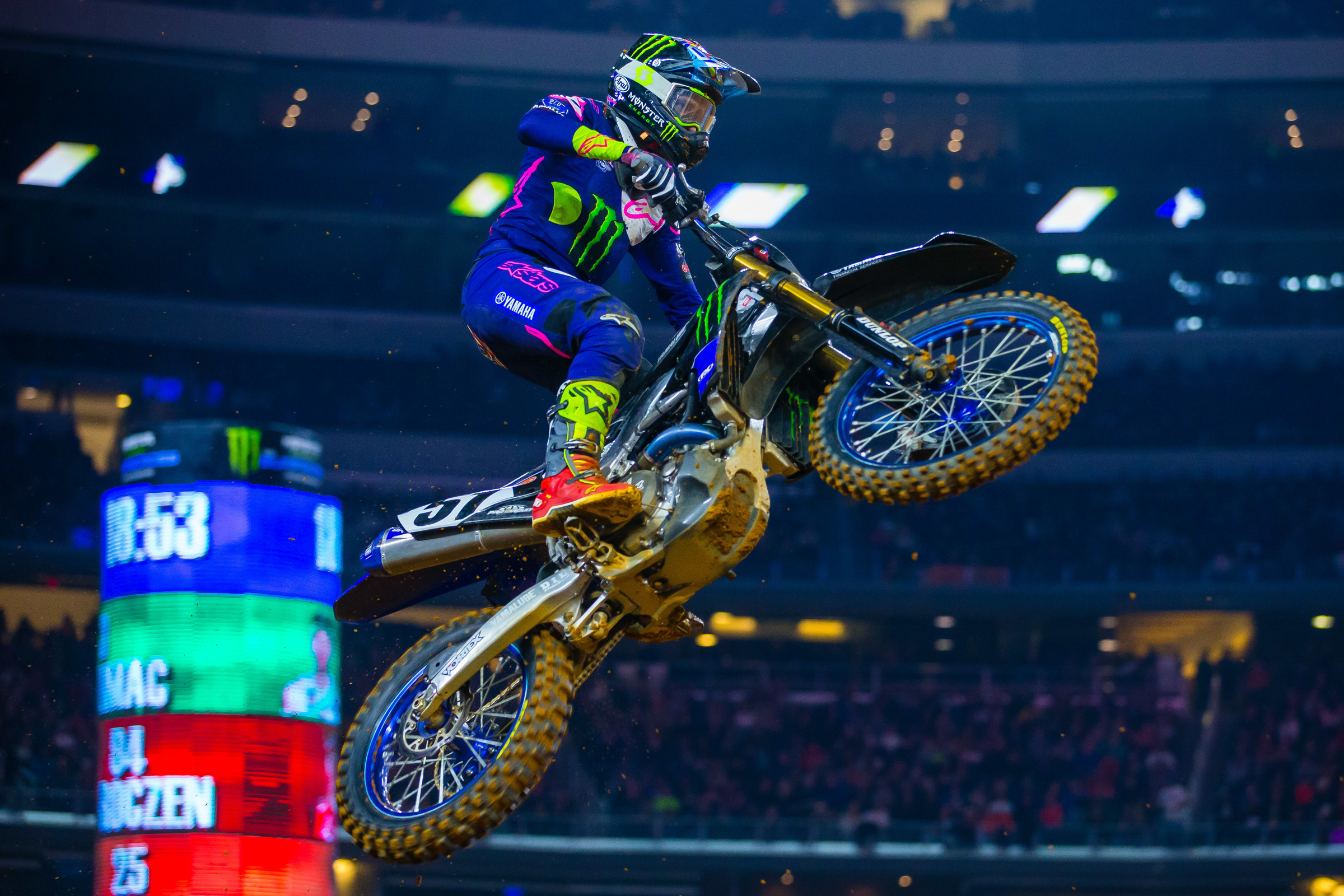 Number of positions lost by Monster Energy’s Eli Tomac during the 450SX main event. Tomac led through lap four, but was passed by Roczen on the fifth lap and then fell on the seventh lap, before finishing 12th.