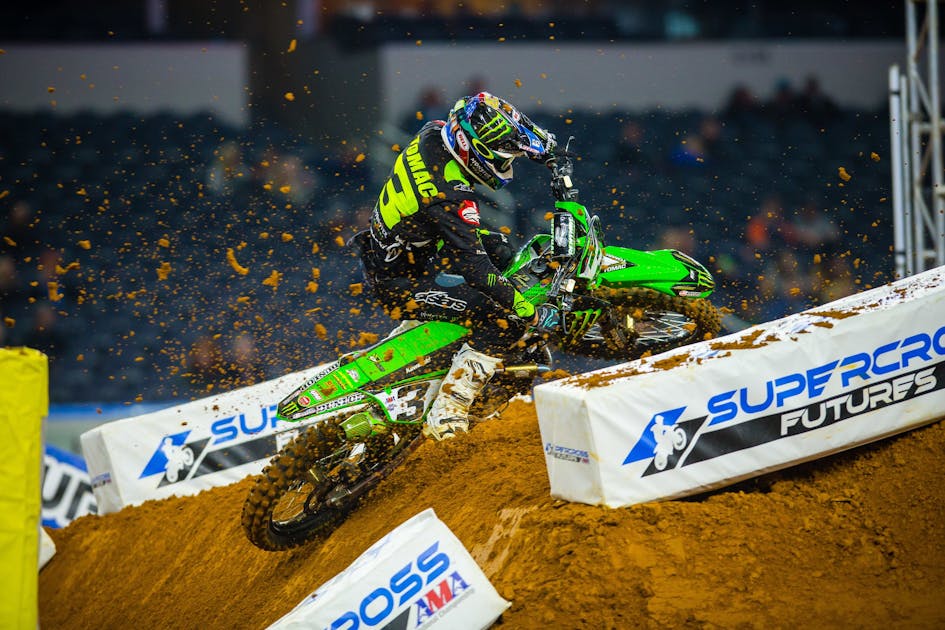 Chase Sexton took third place in Arlington, but it could have been so much better for the GEICO Honda rider. He set the fastest lap of the 250SX East Region main, and even found himself catching race leader Austin Forkner at one point. Unfortunately for Sexton, he stalled his machine once and crashed once. The end result was third behind Forkner and Justin Cooper, and while a podium finish is great, a win would have been so much sweeter, especially since Sexton has yet to get one. Think he’ll make it happen in Detroit? –Hansel