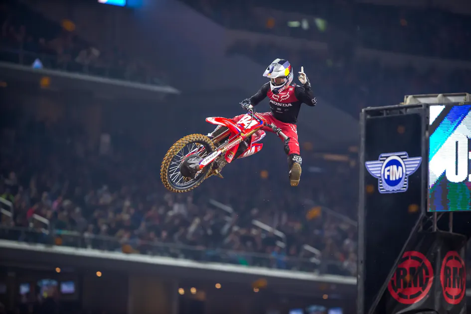 Close finishes are becoming a theme for @cooperwebb2. | @supercrosslive (Photo - @shepherdphotos)