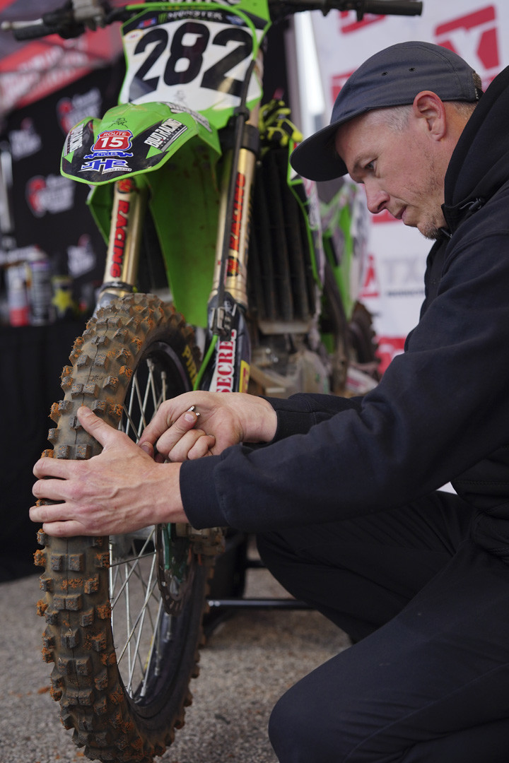 Having spent a lot of time with the TXS Productions team, and Jason himself (he actually traveled with me quite a bit to the races last year to help me with traveling tasks after the company he previously worked for restructured his division and let everyone go) I felt that a man who transitioned from living life as a mountain bike gypsy, to living life as a privateer motocross mechanic, was an interesting tale. Watkins laughs that this wasn’t a step forward, nor a lateral move, but a side-step in his career; from one gnarly/true grit lifestyle to another.