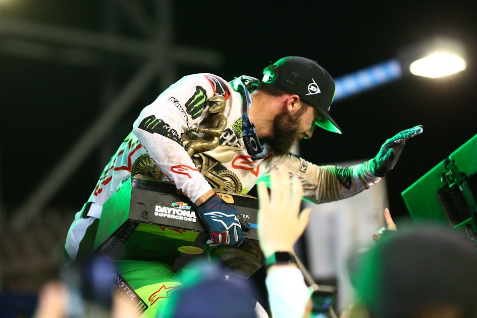 Monster Energy Kawasaki’s Eli Tomac bounced back from a disappointing sixth in Atlanta to claim his third win of the 2019 Monster Energy AMA Supercross season on Saturday at round 10 of the championship from Daytona. Tomac now moves into a tie for second in points, 19 behind Cooper Webb.