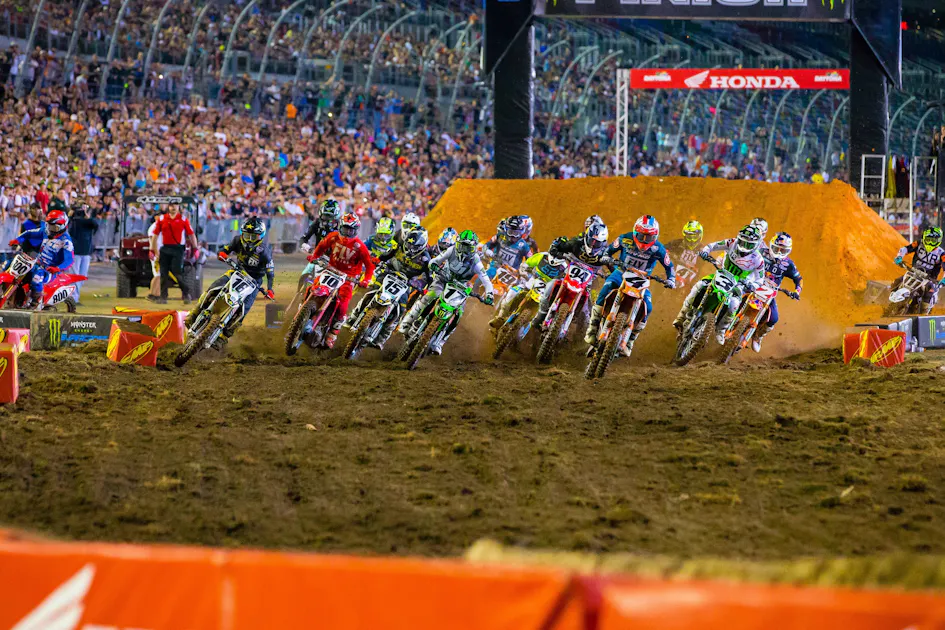 Another factor was the two distinct line choices. The inside line was the shortest distance, but riders started from a virtual standstill on exit. The outside was easier to maintain momentum and get back up to speed but it was the long way around and opened up to a block pass. Cooper Webb and Marvin Musquin were playing cat and mouse with these two lines in the main event. I was a fan of the outside line for most laps but there was more risk involved. To use the outside, riders had to remain aware of who was around them.