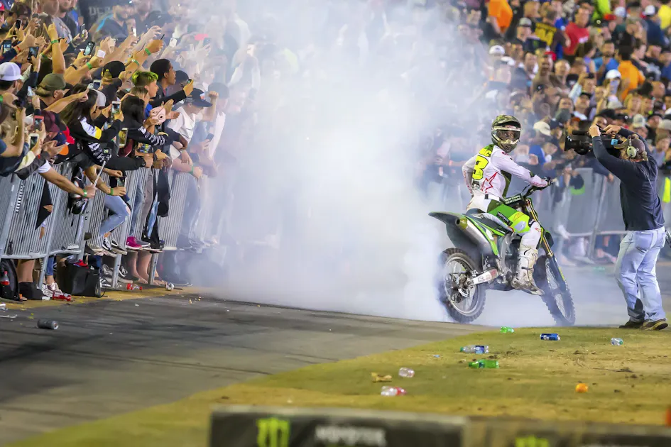 “We were laughing about him having his best race at a track like Daytona. Why wouldn’t he? You know what, though? From what I know, I do think things went a little south when he spent time in California right before A1, but I don’t really believe that was a make or break thing for his year. If it would have been normal A1—as far as I know, this is how he operates, he can get really good in a hurry, and he can get really bad in a hurry—and he had a good night, I think he would have taken off immediately. When A1 didn’t go to plan and everyone was talking about the opening round mud race, whatever, I really, really think that hurt his motivation. I really believe that. He’s like a light switch. Now, finding what turns that light switch on and off, that’s what JGR is trying to figure out. For example, Daytona, I think was a very good round for him. Because the track, you could use less energy and go fast. Everyone talks about Daytona being gnarly, but it’s a very technical track and he’s a very technical rider. So if you watched him ride, he was effortless. He wasn’t hammering the whole time. He wasn’t hitting the bumps. He was jumping the bumps. He was floating through the sand section. He was very light on the bike. I really think that was the beginning of a turnaround. I think things are going to get good for him in a hurry. I really, really believe the beginning of the season just hurt his motivation. I really do.