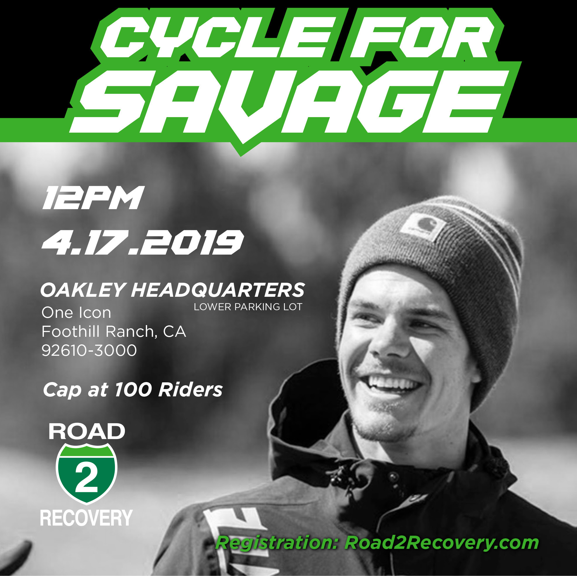 Encinitas, CA– Registration has officially opened for the highly anticipated “Cycle for Savage,” mountain bike fundraiser ride to support Blake Savage in his road to recovery. On Wednesday, April 17, 2019, the first 100 registered riders will enjoy a low-key relaxing 50 mile/2hr ride starting and ending at the lower parking lot of Oakley HQ; located at One Icon, Foothill Ranch, CA 92610.