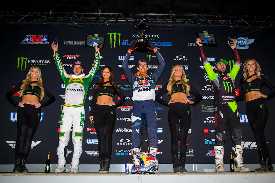 Honda HRC’s Ken Roczen bounced back from a rough couple weeks to take second with Monster Energy Kawasaki’s Eli Tomac rounding out the podium.