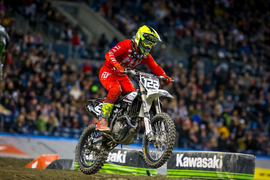 Chris Howell: Seattle is my home round so I’m always super excited to come back and race for the hometown fans. It made it even better that the weather was amazing and not a drop of rain fell all day. The track was technical and suited my style even with the dirt being a little slick. Also the whoops were a little tricky to navigate with the length and the slight uphill that led to a single at the end. Overall I qualified 22nd in practice which I was happy enough with and looked forward to the night show. During my heat race I was in qualifying position but made a series of mistakes on the last lap and finished 11th. Going into the LCQ I felt confident and I had a top three start until I got hit from the back and went down in the first turn. I came back to 10th before they red flagged and restarted the race. After the restart I started around 10th and made my way to fifth. I battled with the rider in fourth for a few laps until we made contact and that rider left the track and bypassed the triple jumping back in front of me. After that incident I was credited with fourth place giving me the last spot in the main event. Although that’s not exactly how I wanted to make the main event I made the most of the opportunity and finished a career best 13th overall in my home state.