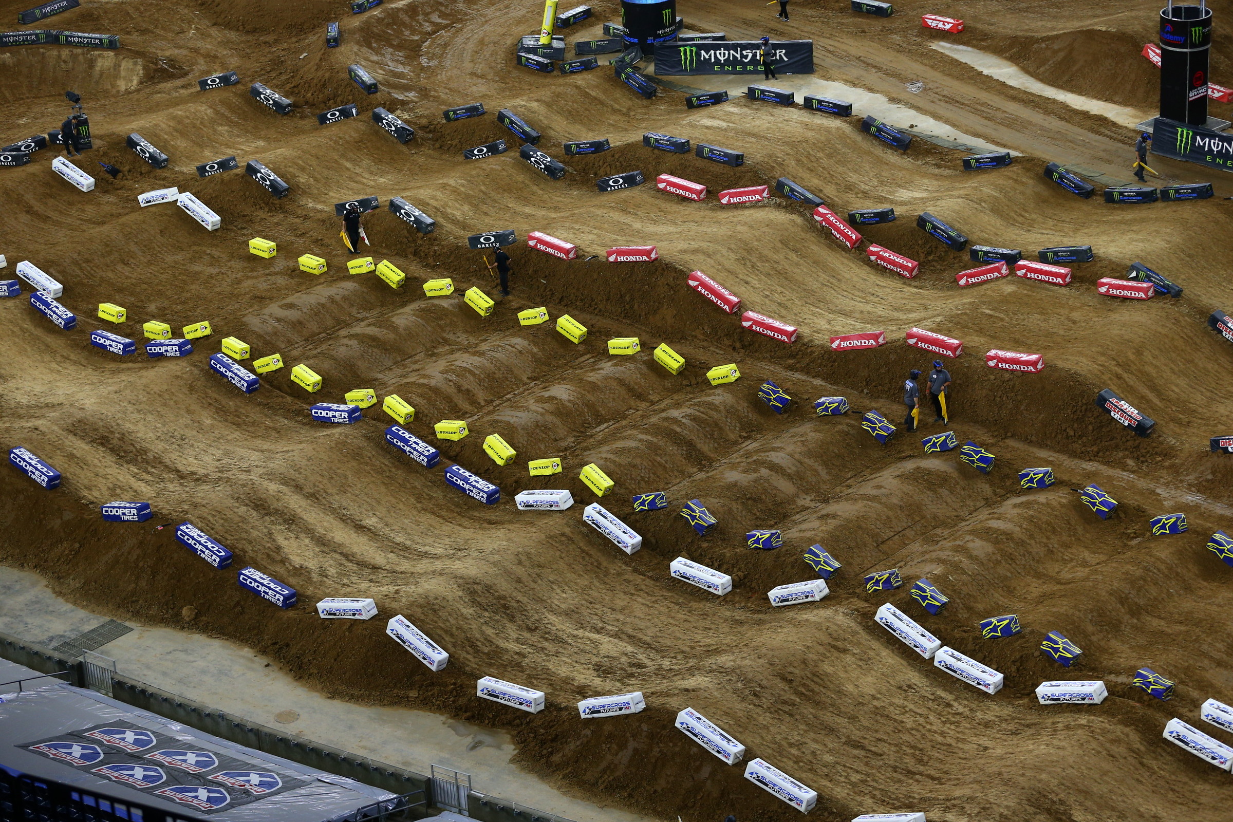 The track, which seemed a little drier than normal during track walk, has three rhythm lanes, two whoop sections, an over/under bridge, and a sand section. It does not reuse the start stretch, so there won’t be a long straightaway tonight. The whoops aren’t tiny by any means, but they’re not like the monsters we had last week in Seattle. They’re shorter in length too, and so far in free practice the guys seem to be skimming them without any major drama. Timed qualifying is just around the corner, so check back soon for a report on who's throwing down heaters in Houston.