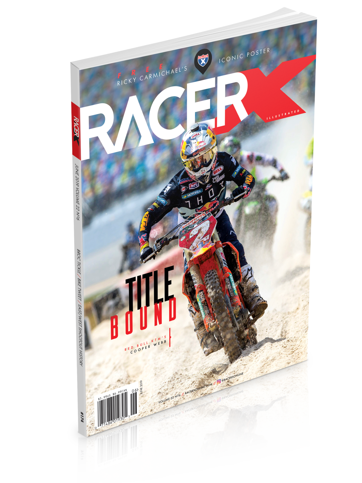 Get the inside scoop on Broc Tickle’s ongoing suspension stemming from a failed drug test, the untold story behind the most expensive photograph in motocross history, how the East-West Shootouts and Showdowns began, and Bike Week at Daytona Beach. Along with those stories get the never-before-seen Ricky Carmichael poster, which has a fabled story of being “the most expensive photo in motocross history,” available only in the print edition of the June issue of Racer X Illustrated.