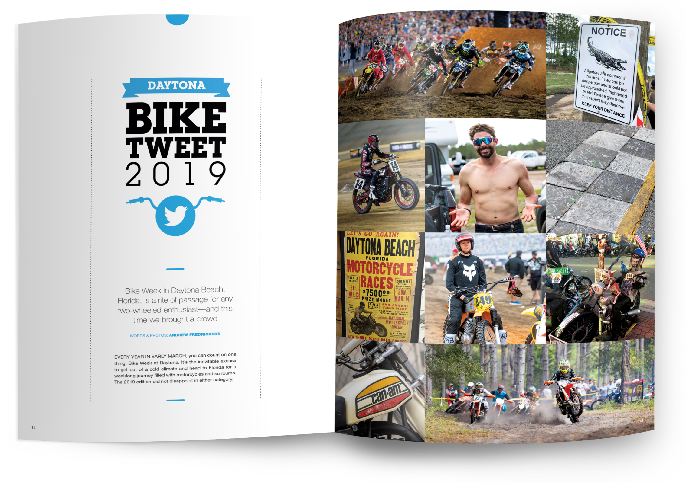 Bike Week is a rite of passage for any two-wheeled enthusiast. This time around, the Racer X gang hit Daytona Beach with enthusiasm and social media outreach to burn and tweeted all about it in Bike Tweet starting on page 114.
