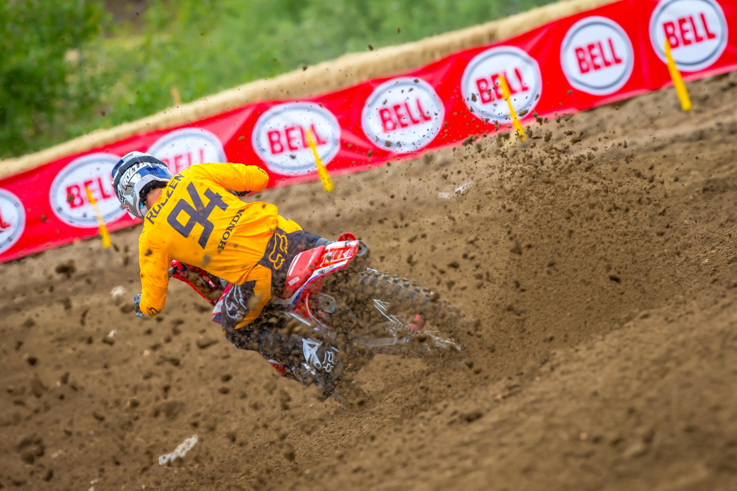 The rain continued to fall throughout this moto, and while it wasn’t an absolute downpour, it was pretty steady, which made the track quite slick. Many of the riders ditched their goggles, and one of the downhill sections was so slick and gooey the riders almost looked like they were tiptoeing down. The rain hasn’t let up either, so expect the second 450 moto to be interesting!