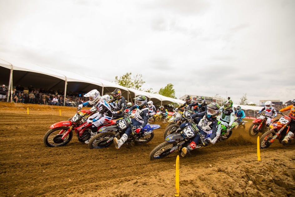 It’s not ideal, obviously. There’s not a lot anyone can do about it but there some small adjustments that help. Choosing a tire that will work in both conditions can help, although it might be a bit of compromise in both situations. Most riders use the same tire on every track these days so they might not even have changed anything. If the track was super hard and slippery, though, and a rider was using a hard-packed front tire for a normal moto, maybe he could move to a more intermediate in case the rain did come. The early laps would be a compromise but the muddy second half of the moto would be manageable versus the original tire choice.