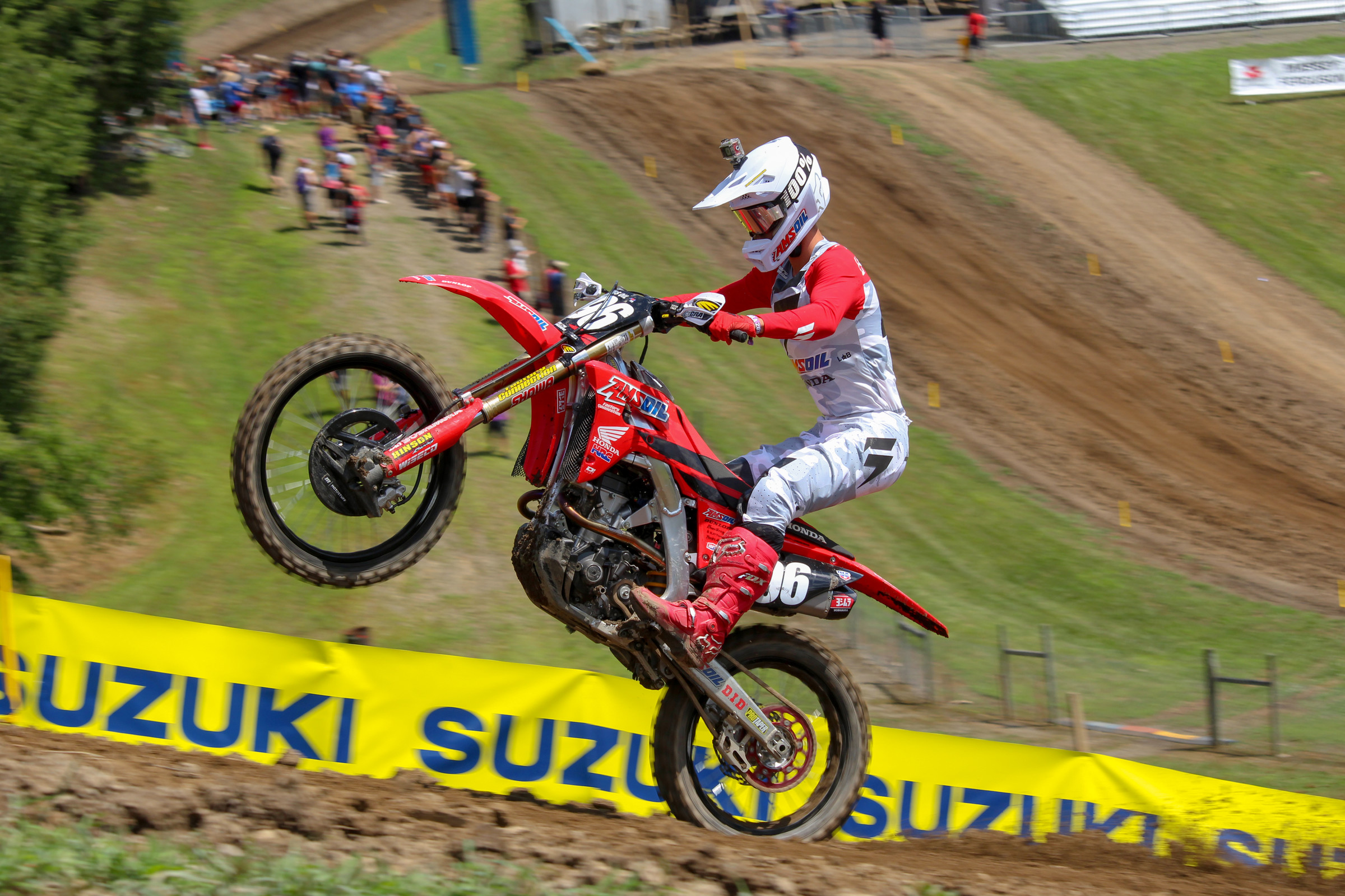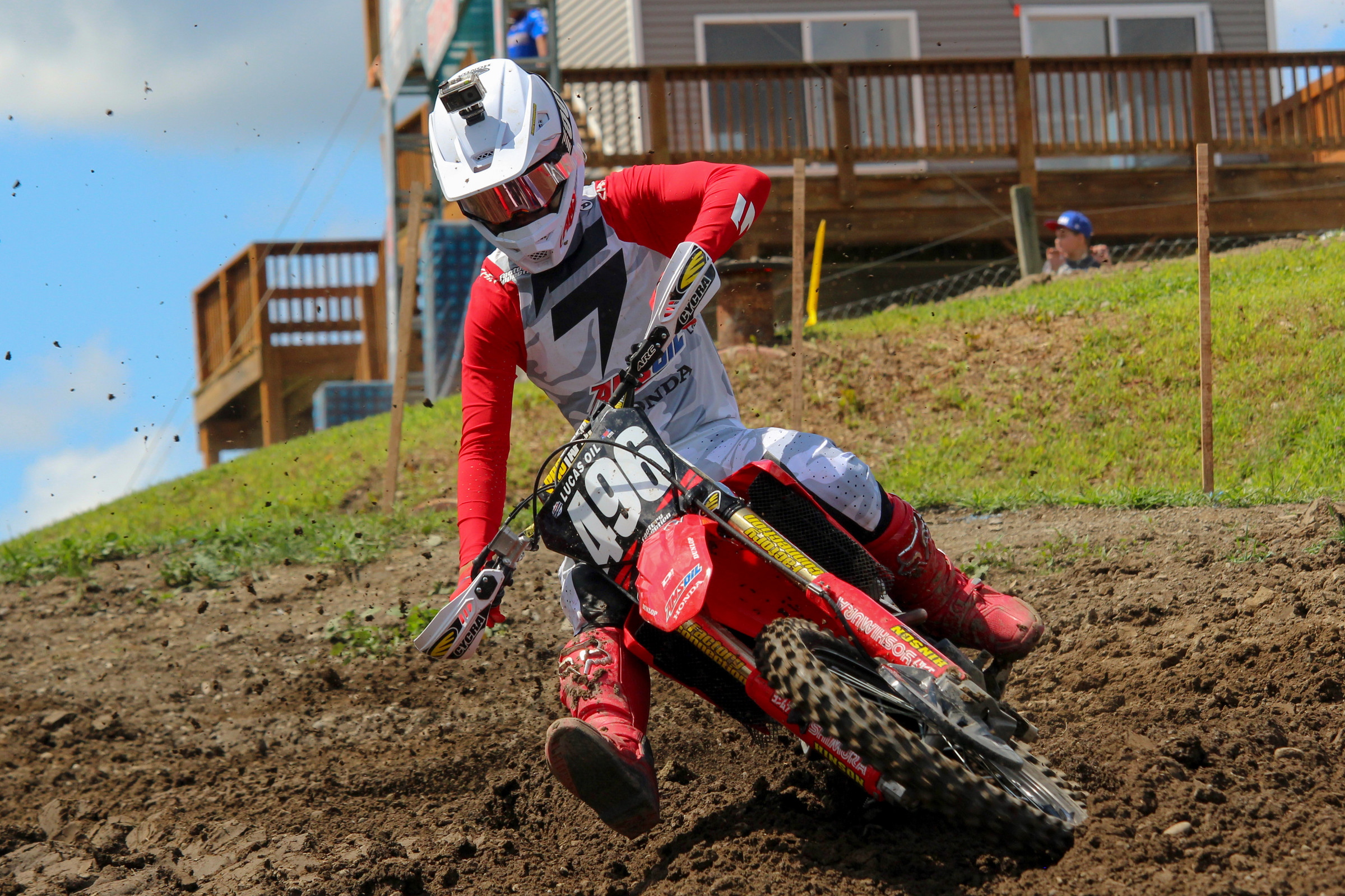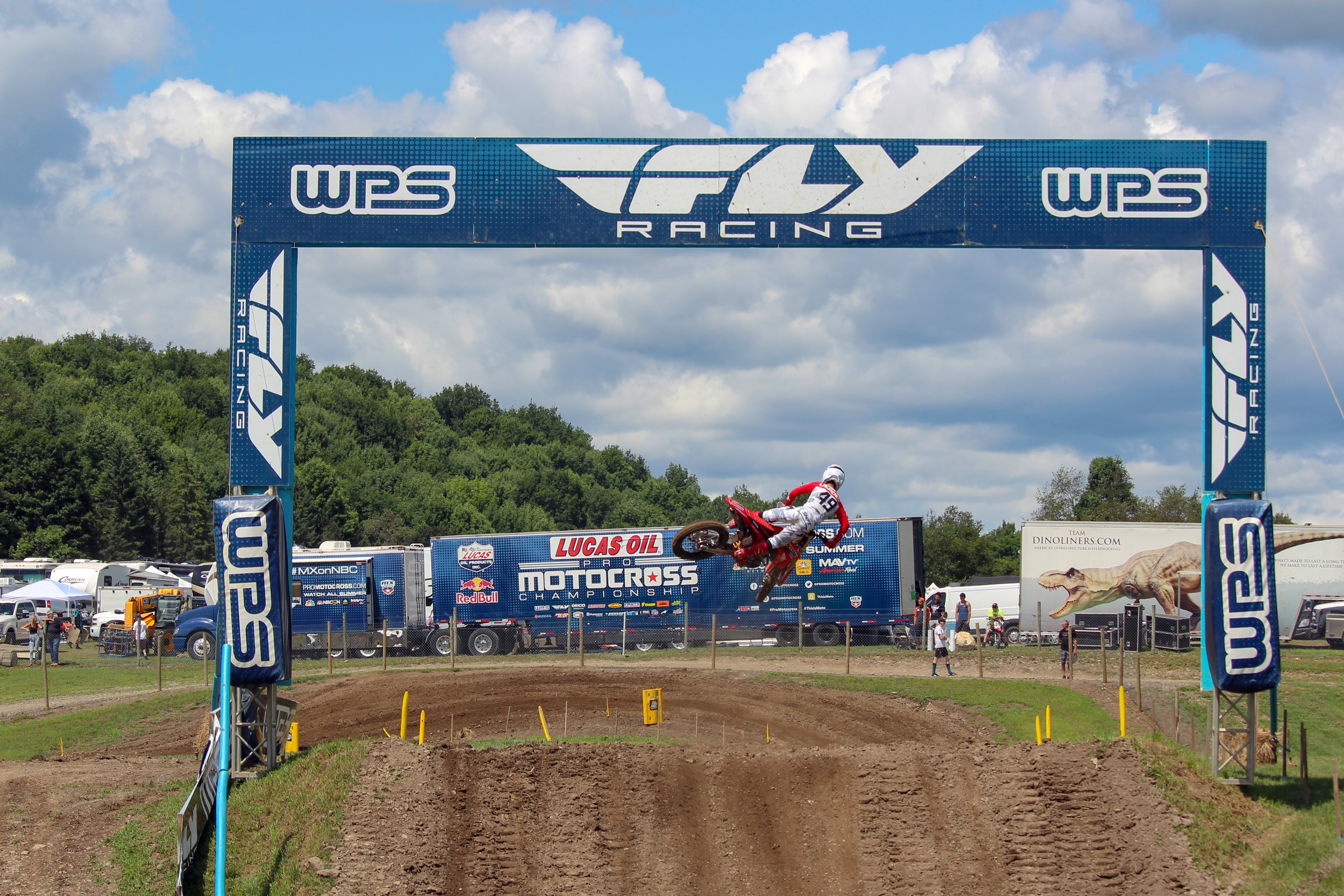 Shimoda and Mumford both looked great in the riding session of press day. Shimoda, who is repping #374, was throwing huge whips off of the Sky Shot jump in front of the fans at the back section of the track and Mumford, who is repping #822, was crushing the turns of Unadilla MX. Not only does Shimoda have a different number this weekend than he did at Loretta Lynn’s, but the Japanese rider is also repping GEICO Honda graphics on his CRF250R because he is officially a member of the 250 roster moving forward. Although he’s got a new number and new graphics, is he still going to be “Smokin’ Jo” after this weekend? Mumford lead the pack of riders out of the starting area at the press day and looked solid throughout the session. Although his style might not stand out like Jett’s, Mumford has the ability to get going at a good speed—will he be able to show it tomorrow? –MitchKendra