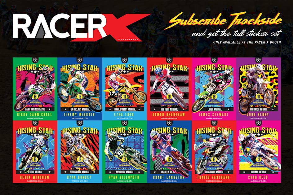 Are you headed to the Ironman National this weekend? Make sure you stop by the Racer X booth, located in Sponsor Village, and subscribe for as low as $15 and receive ALL TWELVE Official 2019 Lucas Oil Pro Motocross Racer X event stickers. You will also receive a complimentary magazine and free Racer X stickers.