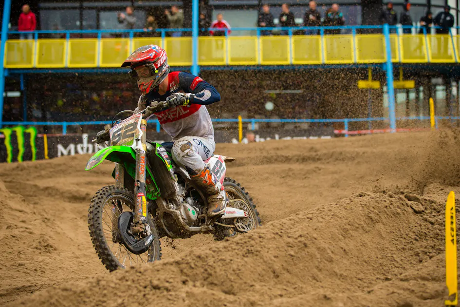 We ended up with third gate pick out of the ballet, which was super nice. Then someone didn’t show up for the qualifying race and we ended up with second gate pick. I had the best gate you could get for the qualifying race, which was really nice. I actually thought I was going to get the holeshot for a minute, but Jorge Prado passed me. When I went into the corner behind him I got really nervous and got a little star struck in a way. It was like, “Oh my god, I’m right up in here in the top five.” For the first three laps or so I could see the front guys, like [Tim] Gajser, and I got really tight because I was nervous. I didn’t know what to expect, and I didn’t expect to be that far up front. So the qualifying race didn’t go so well, I ended up 17th, and our MX2 rider was a little off the pace. I’m not really sure where he ended up, maybe 30th, and Chase Marquier crashed, so we had to go to the B Final. We skipped practice in the morning on Sunday, skipped the sight lap, and my bike and Chase’s bike both broke on the first lap. We were done immediately. It was a short weekend for us, but it was still one of the most fun weekends you could possibly have.
