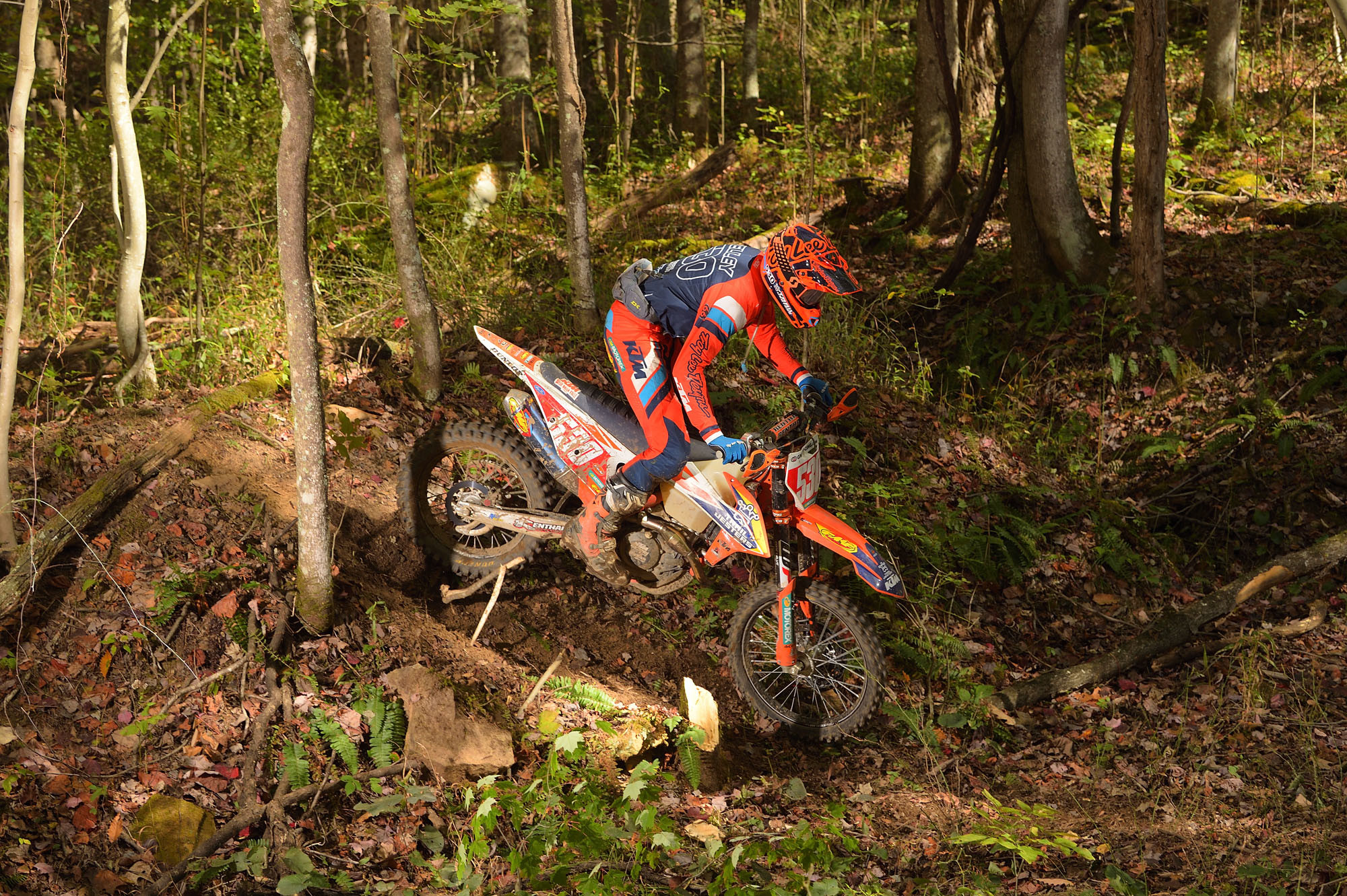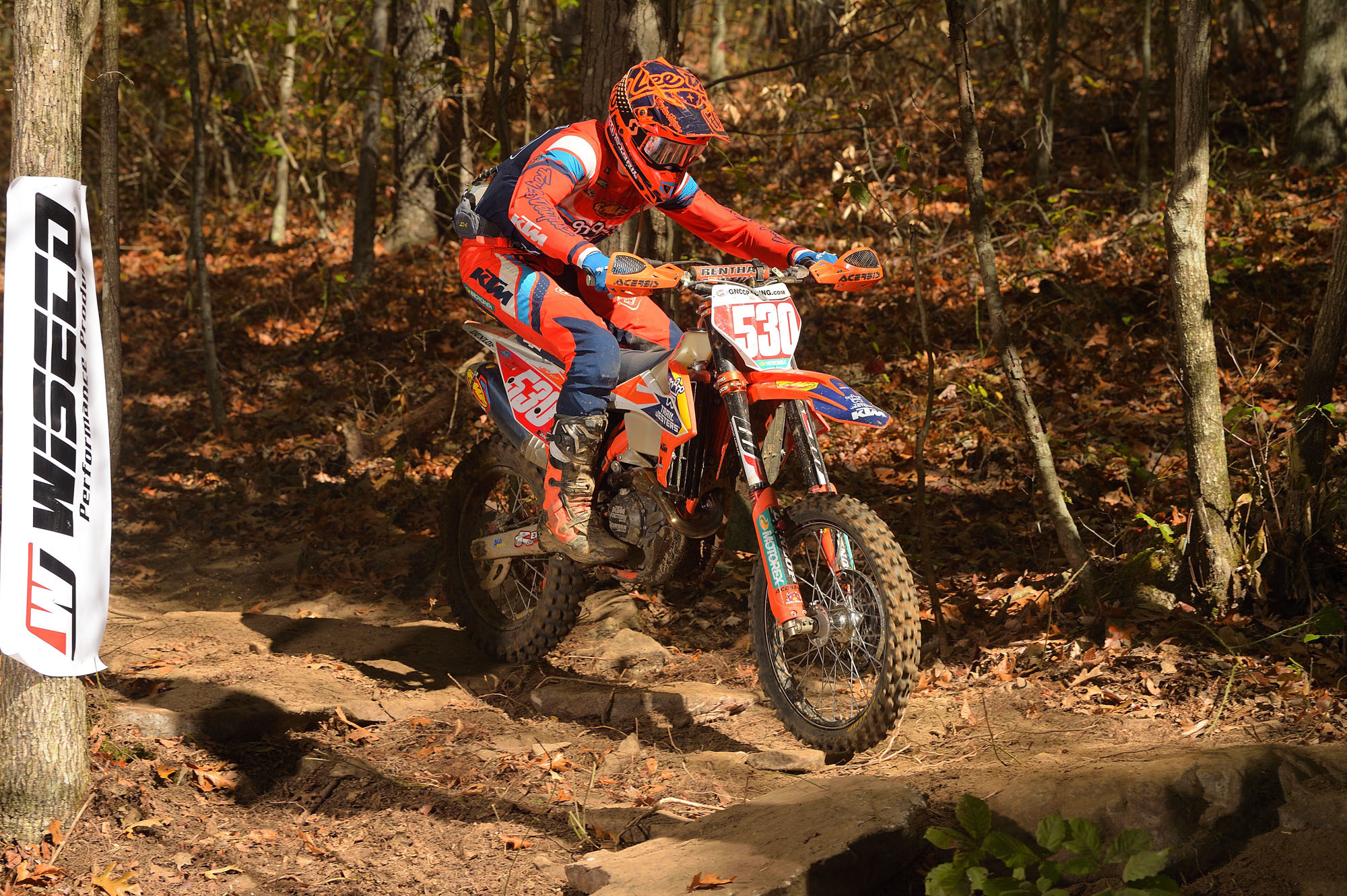 Now seven-time AMA Grand National Cross Country XC1 Pro Champion, Kailub Russell entered the 2019 season coming off a shoulder surgery that left him out in the wind as the short off-season allowed for very little time to catch some rest and to properly heal. With a pack of talent gunning for him, the FMF/KTM Factory Racing-backed Russell needed to get things handled right off the start and command the points lead early while keeping himself off the ground and healthy. Even for such a talented and tough rider, the demanding physical aspects of this sport were having its way with the champion and as early as round two he was questioning whether he was going to be able to make the season much less battle it out for his seventh championship. The competition wasn’t taking it easy on him as Steward Baylor Jr. and Thad Duvall could taste blood in the water as they looked to put Russell down and keep him there. But, by mid-season, Kailub was riding a razor-thin points lead and had thus far managed to keep himself in the hunt round after round.