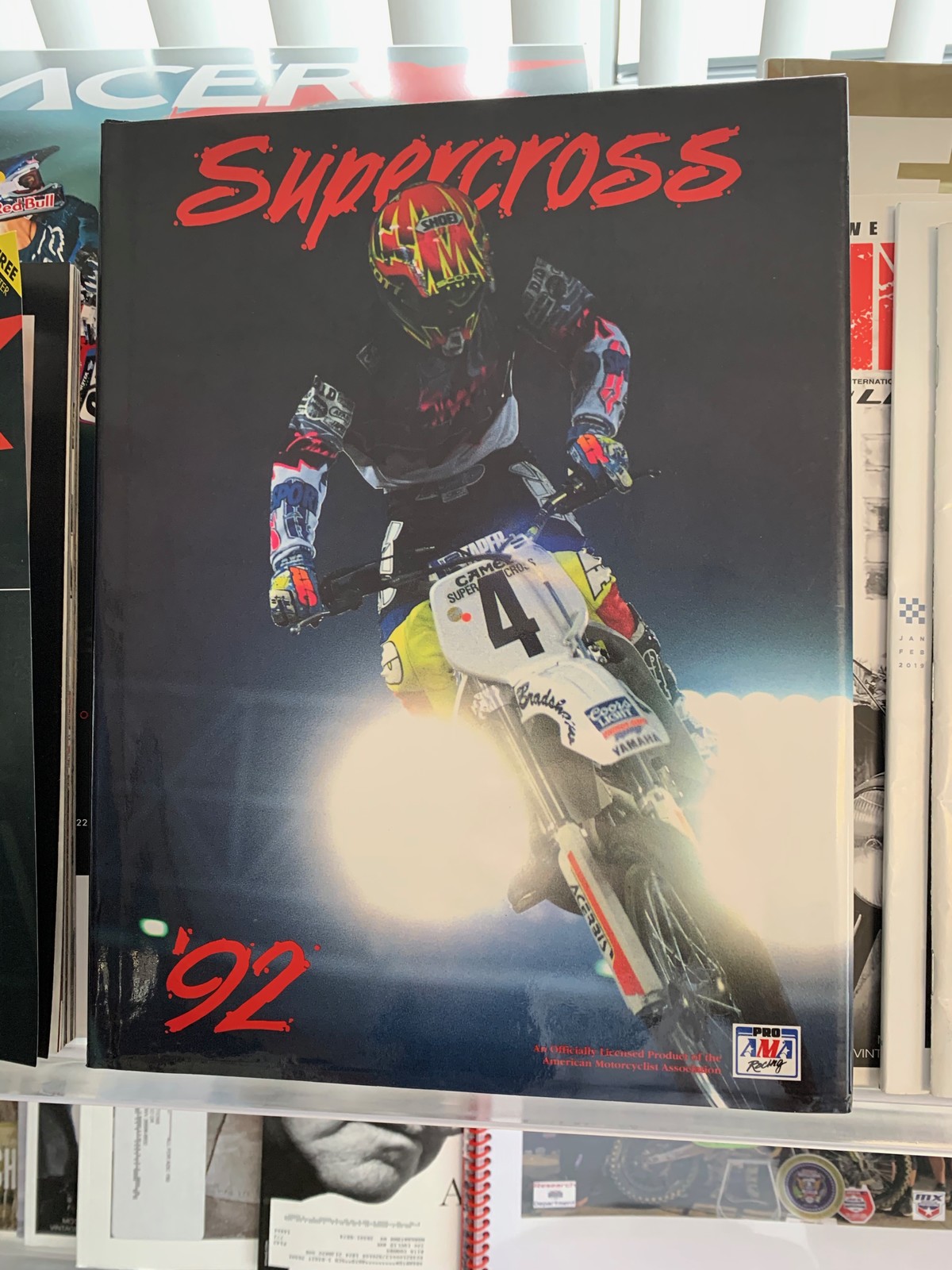 The year 1992 was a banner year for books as both Supercross '92 and Motocross Yearly '92 came out. SX '92 was made by Champs Marketing, the same Ohio-based company behind Rad-N-Bad posters and the Hi-Flyer trading cards. Most of the photography is by John Valdez. He also had a hand in MX Yearly '92, along with John Raymond and Mike Snyder, which covered all 12 AMA Nationals that year, as well as the last 250cc USGP at Unadilla and the '92 Motocross des Nations in Australia. Both books are full of fantastic photography and well worth the search, if you can find them!