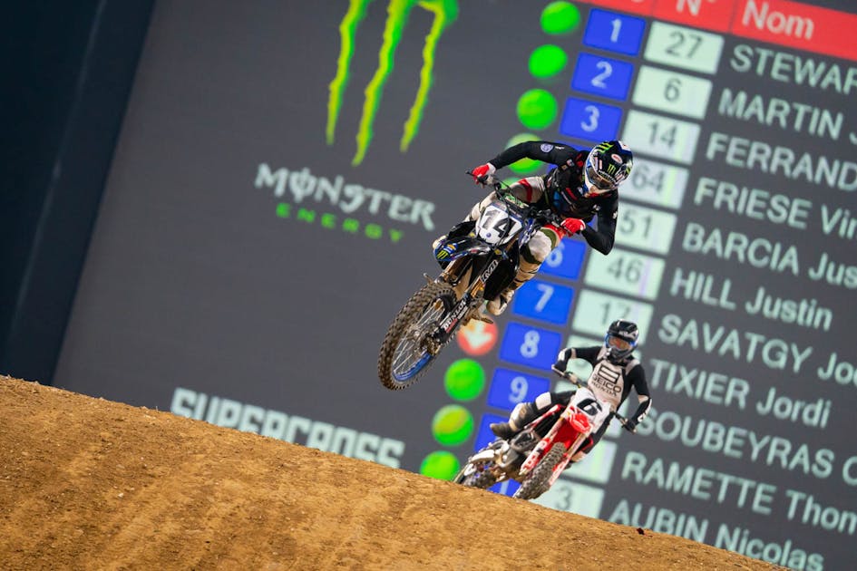 It’s all over here in Paris. Monster Energy Yamaha Factory Racing’s Justin Barcia became a three-time King of Paris champion with smart rides today going 4-2-3 today to take the title by five points over the overall winner today, SmarTop/Bullfrog Spas/MotoConcepts Honda’s Malcolm Stewart. Barcia almost got the win in the second semi-final when he ran down leader Dylan Ferrandis on his Monster Energy/Star Racing Yamaha all the way from eighth. He rode great and when Dylan made a mistake off the finish line triple, Barcia came inside and Ferrandis went down in a move that no one thought was like the old “Bam Bam.” From there Barcia was looking good for the win but Stewart took advantage of a mistake in a turn from Justin on the last lap and took the win. It was a very exciting race.