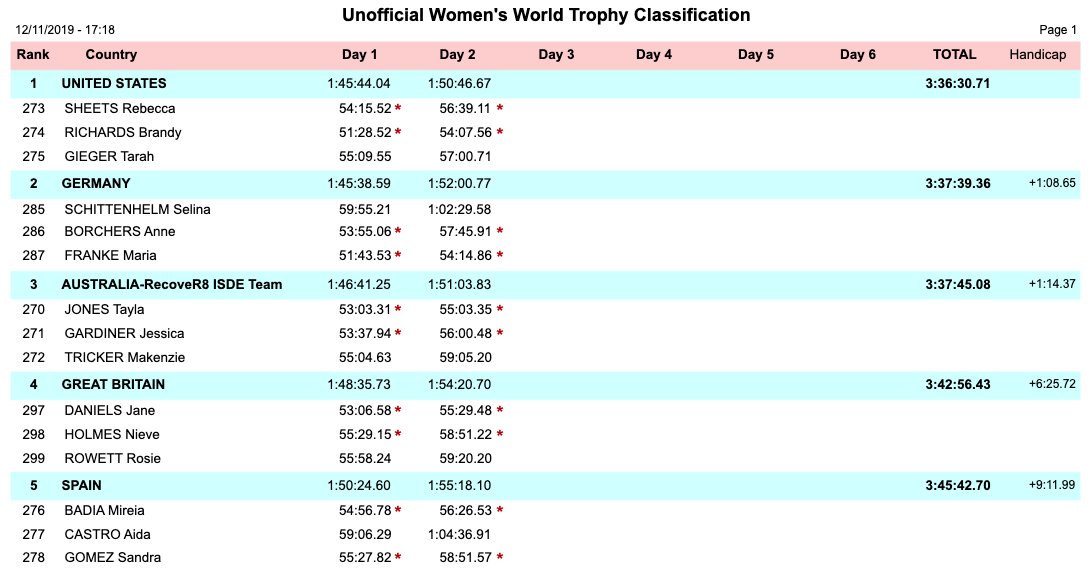 Great Britain remain in fourth with Jane Daniels (Husqvarna_ delivering the team’s best result of fourth. Spain hold fifth, while Sweden complete the top six.