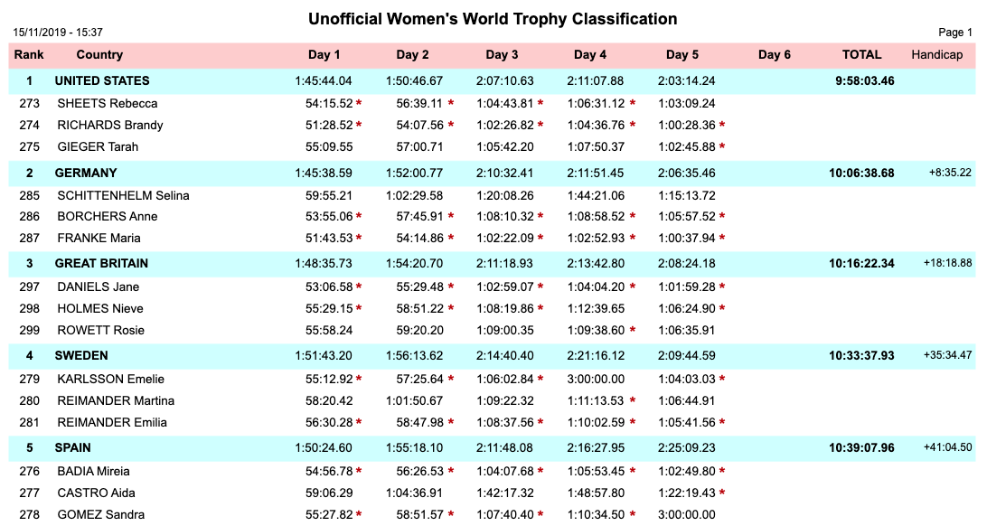 Germany look set to finish as runners-up in the category, with Great Britain also poised for a medal result with third. Sweden and Spain are fourth and fifth respectively, while Portugal round out the top-six.