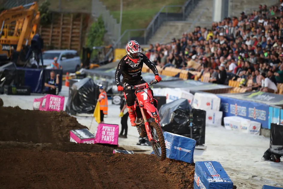 He may or may not be Australian Supercross Champion once Anaheim rolls around. After sweeping the opening rounds, a big crash has Brayton on the ropes a bit physically. Then he found himself leading the final main event at the Monster Energy S-X Open in Auckland, New Zealand, only to crash, uncharacteristically, out of the lead. He ended up fourth overall, and sits one point behind Luke Clout heading into the finale. We talked to him after the race.
