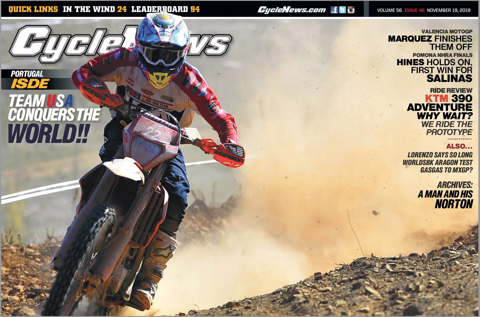 Taylor Robert's effort at the ISDE for Team USA landed him on the cover of this week's Cycle News