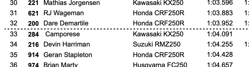 Well, Friese’s starts are on point. Look, he took a big step up in 2018 and last year he was good again but hurt his knee early on. Top ten at Anaheim 1 is WAY legit and he should be proud of this result. I know some of the top guys still don’t give him the respect he deserves and it might always be like that but Vince is for real. He’s built himself up from being on the Privateer Island to fighting for top tens. It’s not as impressive as what Weston Peick did but it’s close. Mad props, as the kids say. [Editor's note: Do they say that anymore? -- Weege]