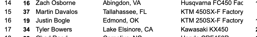 Justin Bogle is on a 250? Who knew? Maybe that explains his race.