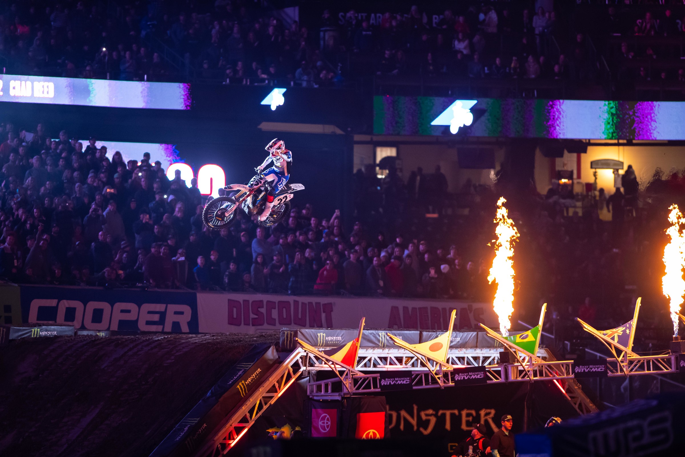 Of the 22 laps the 450SX main event completed Saturday, Barcia led 15 of the main event laps and Monster Energy Kawasaki’s Adam Cianciarulo led seven before finishing second in his premier class debut.
