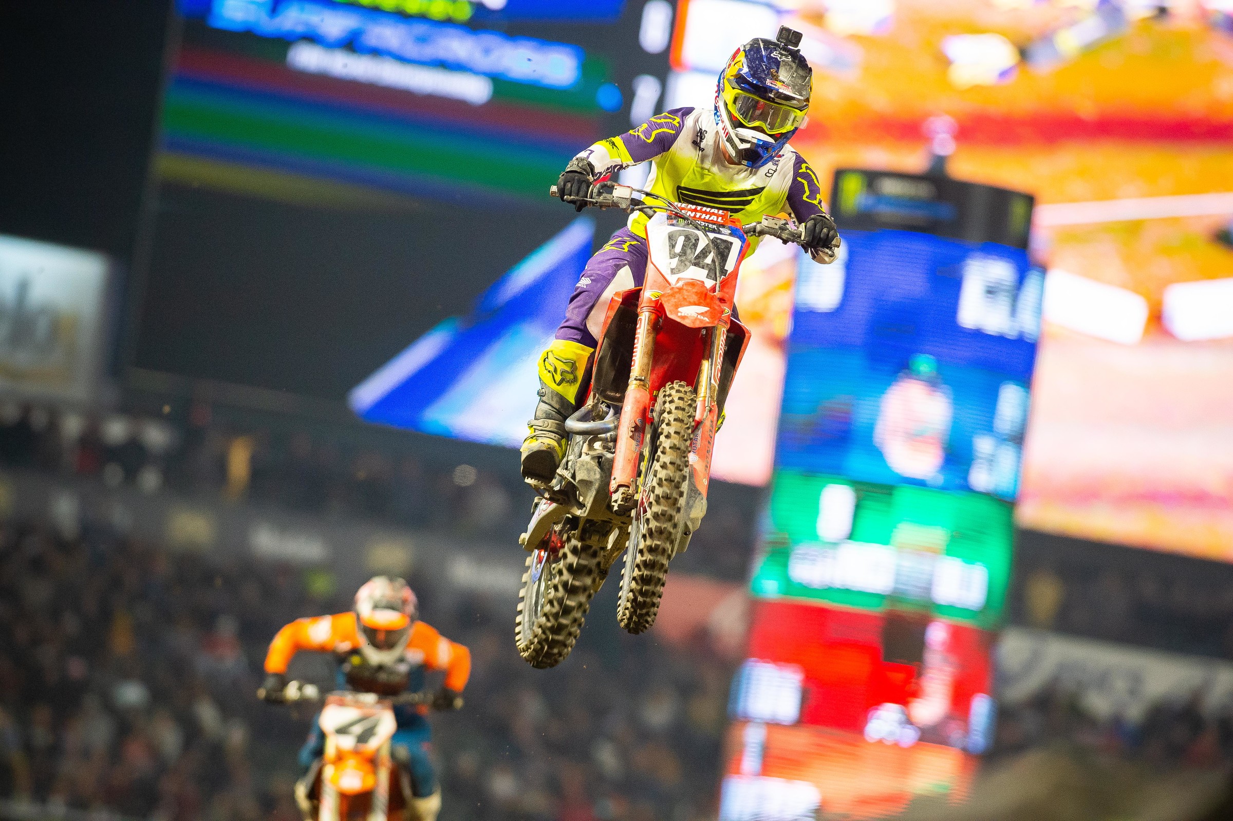 A man who has sure as hell been there, done that and bought the T-shirt, this past Saturday evening—while Justin Barcia and Justin Cooper rode to 450 and 250 main event triumphs, respectively—Ricky Carmichael was inside Angel Stadium in Orange County, California, and up in the NBC Sports television booth as an analyst for the Monster Energy AMA Supercross Championship. When Ricky Carmichael talks, people listen, and to that end, we chased down the man to get his take on just what played out on the 26,000,000 pounds of dirt laying atop the infield and outfield of the Angels of Anaheim. Thus, when RC started reviewing the klieg-lit night that was, well, we were all ears.