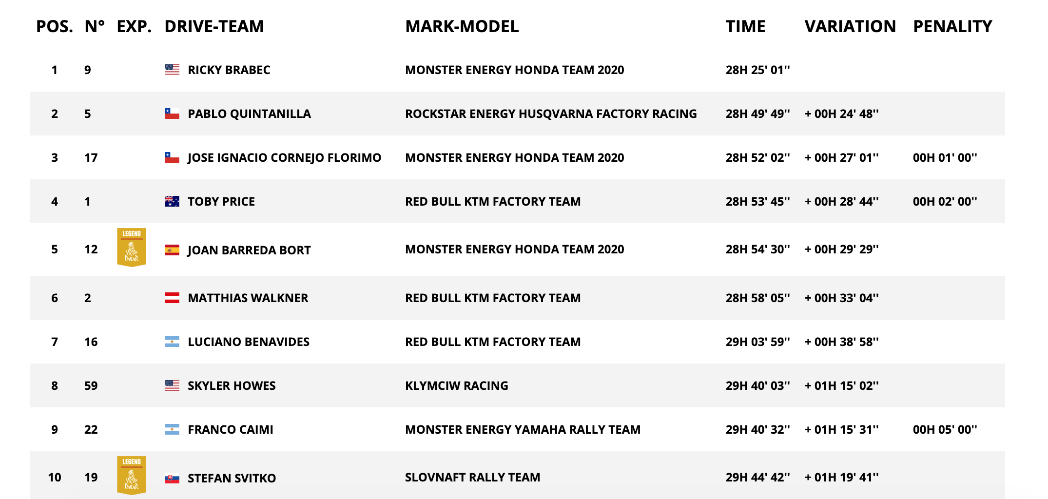 January 11, 2020| Rider | Time | Interval | Best Lap | Hometown | Bike | |