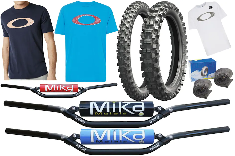This week, MotoSport.com brings you the Mika Metals Pro Series handlebars, the Oakley Legacy Ellipse T-Shirt, and a Michelin Starcross 5 Tire Combo with free tubes all with discounted prices. We also have a deal on Racer X socks this week. Click the products below and order today!