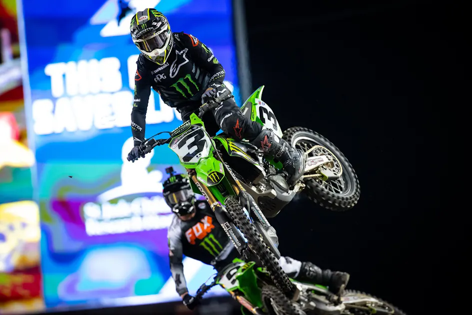 In the 450SX Class, teammates Adam Cianciarulo and Eli Tomac jumped out front. Cianciarulo led the first 10 laps before Tomac used the outside line through the sand turn to take over the lead. A mistake by Cianciarulo in the whoops would cost the rookie several positions as Tomac would go on to take his 30th career main event win. Cooper Webb, Ken Roczen, and Malcolm Stewart fought over the final two spots on the podium but eventually it was Webb and Roczen taking second and third, respectively.