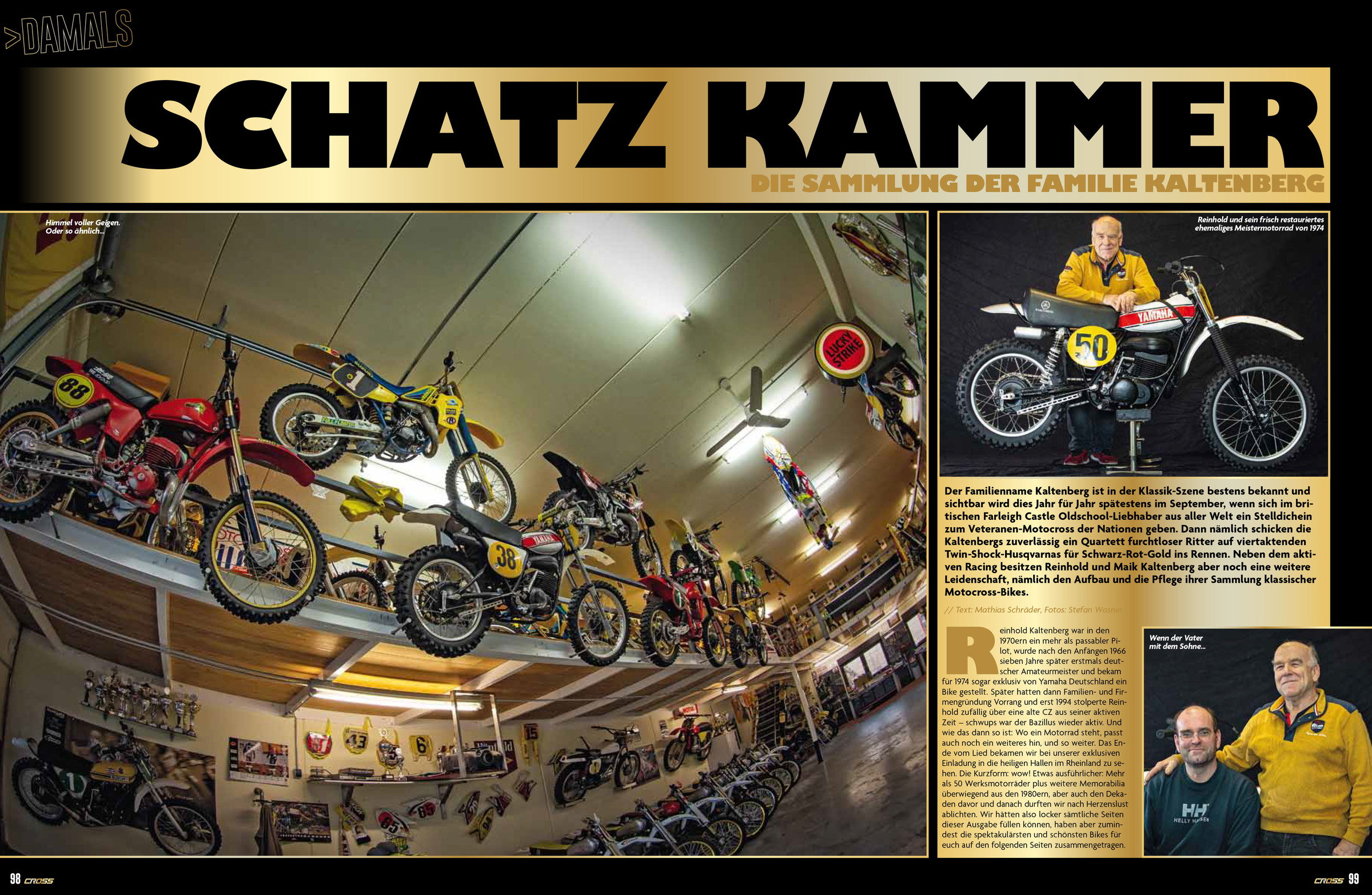 Finally, our friends at the German magazine Cross just sent us their latest issue, which features Monster Energy Kawasaki's Adam Cianciarulo on the cover. They also apparently read about the dust-up between Gary Jones and collector Terry Good about Jones' old bikes and equipment going into Good's new International Motocross Museum, without Gary's approval. They in turn sent us the PDF of an article called "Schatzkammer" which means treasure room and is about an extraordinary collection of factory motorcycles from the 80s." Thanks for the PDFs, Mathias!